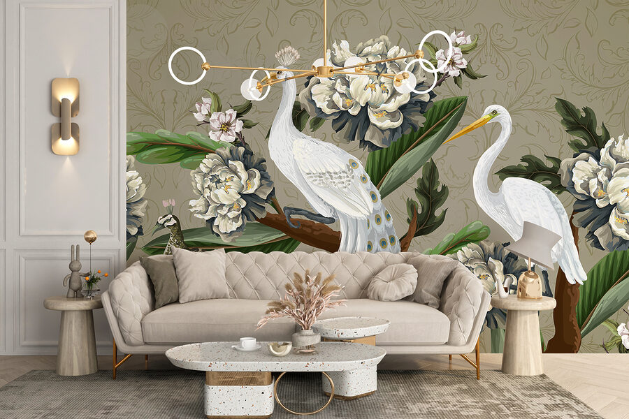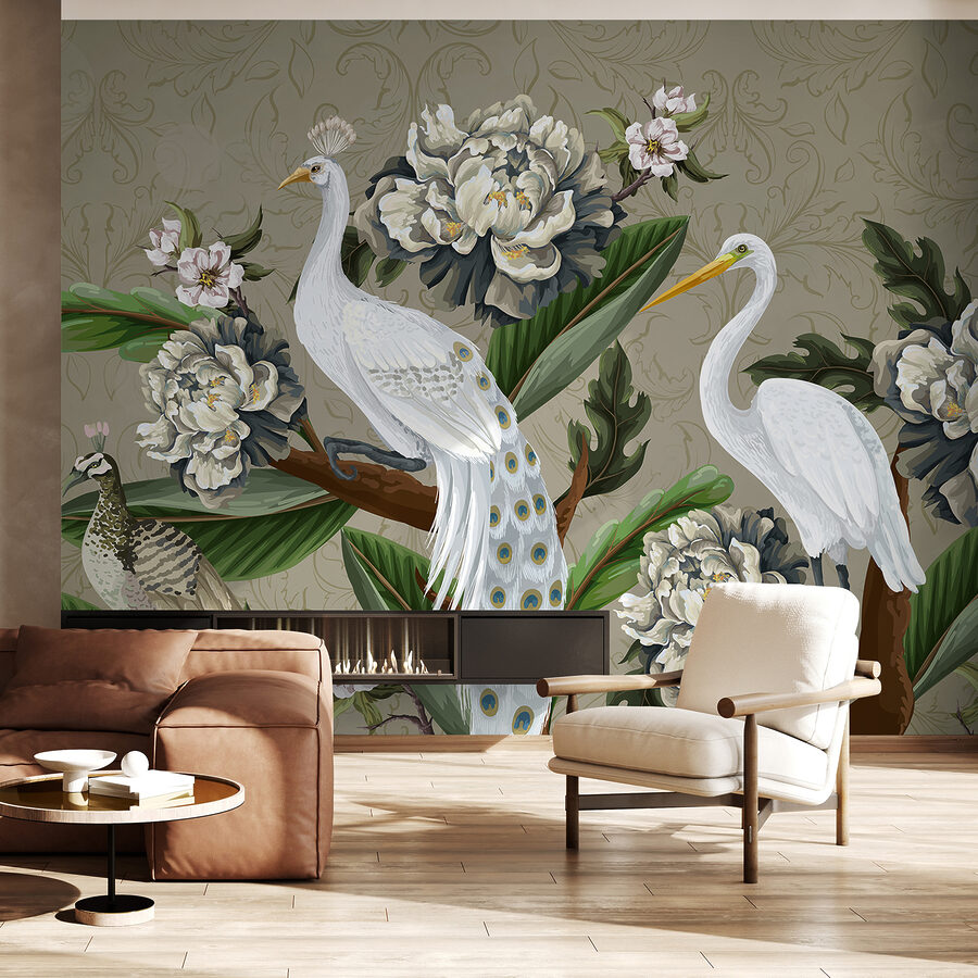 Φανταστείτε το είδος της χαλαρής κομψότητας που φέρνει αυτή η τοιχογραφία – οι τοίχοι σας να αφηγούνται μια ονειρική ιστορία ενός ήρεμου βοτανικού καταφυγίου. Είναι ιδανική για κάποιον που αγαπά τη φύση αλλά και εκτιμά μια πινελιά εκλέπτυνσης. Τα παγώνια και τα λουλούδια είναι τόσο λεπτομερή, που μπορεί να νιώσετε ότι περπατάτε μέσα σε έναν εξωτικό κήπο. Ιδανικό για να δημιουργήσετε τον παράγοντα “wow” όταν σας επισκέπτονται φίλοι – εγγυημένα θα προκαλέσετε συζήτηση!