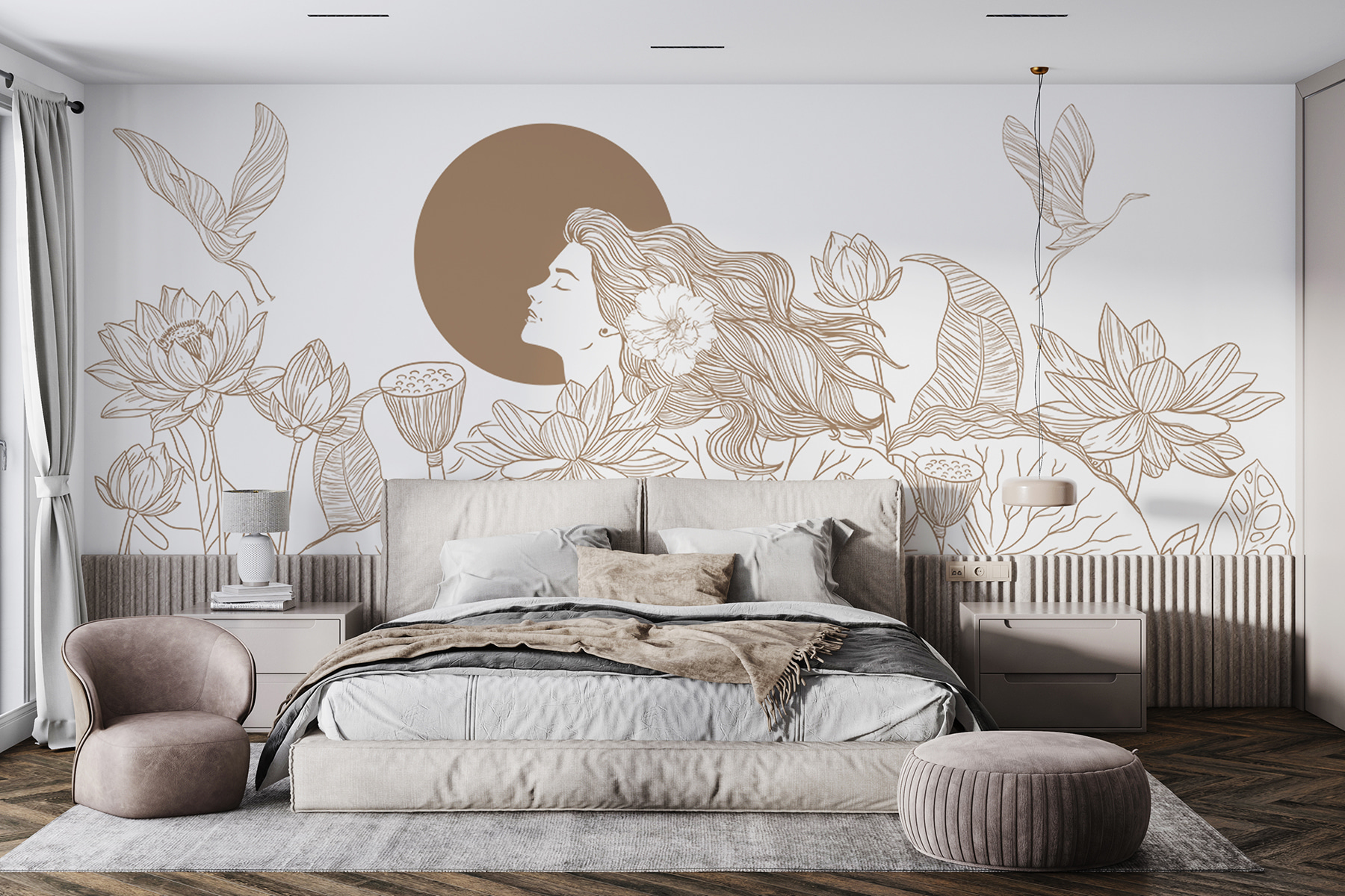 Μεταμορφώστε οποιονδήποτε χώρο σε μια γαλήνια απόδραση με αυτή την εκπληκτική τοιχογραφία τοίχου με μια γυναίκα που περιβάλλεται από λεπτά λουλούδια. Φανταστείτε αυτό: μετά από μια κουραστική μέρα, μπαίνετε στο δωμάτιό σας και σας υποδέχονται ηρεμιστικά άνθη και μια ειρηνική ατμόσφαιρα – σαν ένα μίνι καταφύγιο στο σπίτι σας. Η απαλή ροή των μαλλιών της και οι απαλές γραμμές δημιουργούν μια φιλόξενη ατμόσφαιρα. Είναι ιδανική για μια ζεστή γωνιά ή ως ένα κομμάτι δήλωσης που κεντρίζει τη συζήτηση. Φανταστείτε να πίνετε τσάι ενώ ατενίζετε αυτή την ονειρική σκηνή, νιώθοντας το άγχος να λιώνει. Απλό, αλλά γοητευτικό! Οι τοίχοι σας θα σας ευχαριστήσουν.