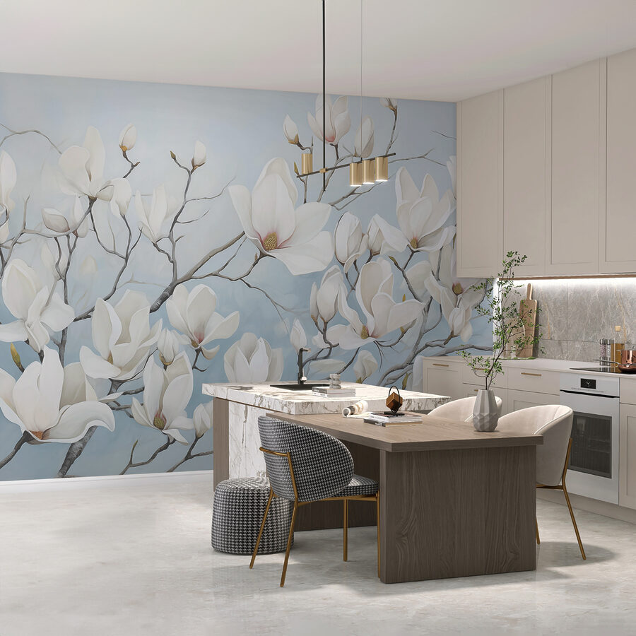 “Ταπετσαρίες w08125” είναι σαν να έχετε ένα κομμάτι της αιώνιας άνοιξης στο χώρο σας. Φανταστείτε να ξυπνάτε κάθε μέρα με αυτόν τον ονειρικό στροβιλισμό από μανόλιες – αυτά τα ντελικάτα πέταλα σε απαλό λευκό και κρεμώδη ροζ χρώμα σε ένα γαλήνιο φόντο. Είναι σχεδόν σαν να μπαίνετε σε έναν ανθισμένο κήπο όπου κάθε κλαδί και άνθος προσκαλεί την ηρεμία και μια πινελιά ιδιοτροπίας.