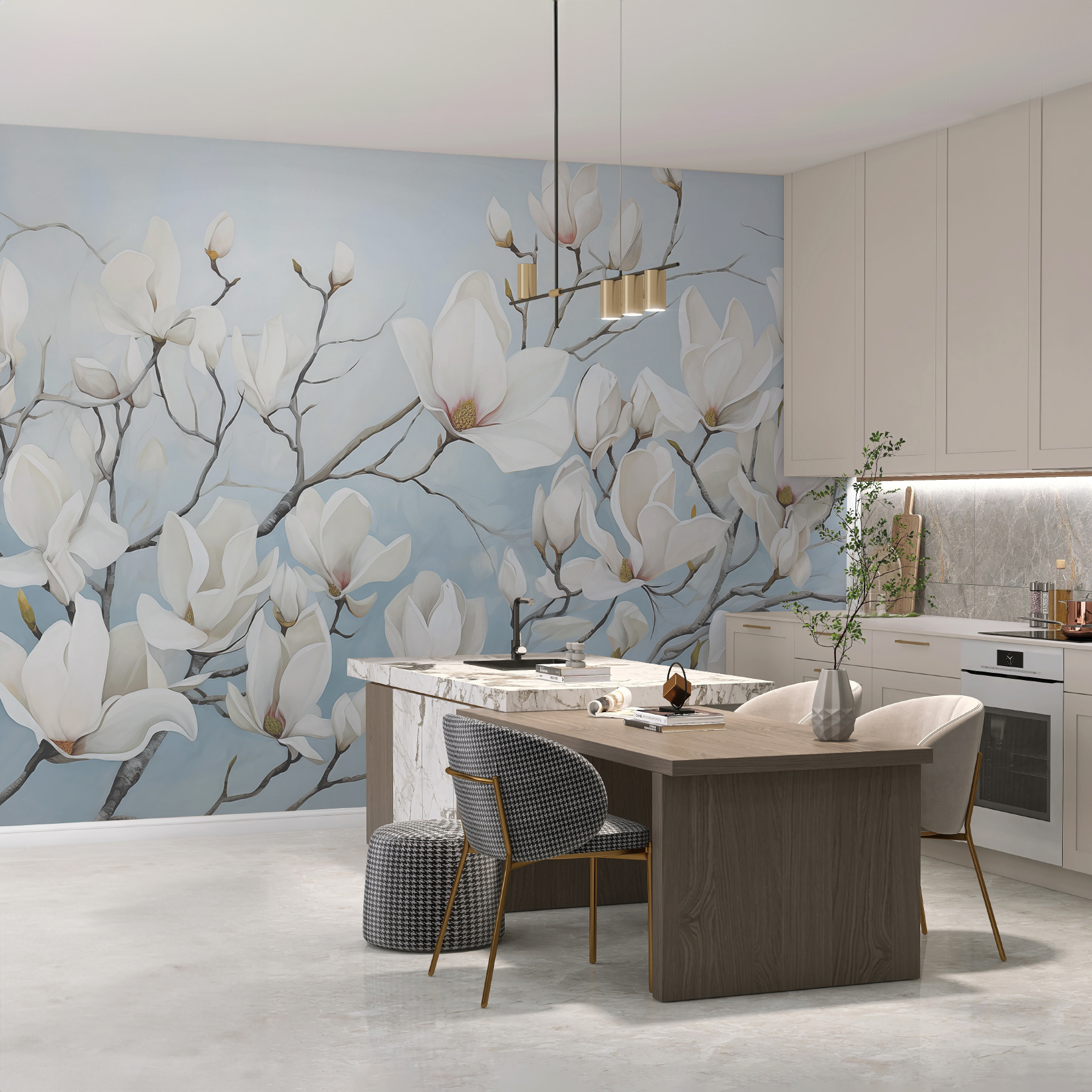 Ιδανικό για υπνοδωμάτιο, σαλόνι ή ακόμα και για μια ζεστή γωνιά ανάγνωσης… οπουδήποτε χρειάζεται μια δόση γοητείας της φύσης. Φανταστείτε τον εαυτό σας να πίνει τον πρωινό του καφέ με αυτά τα ευγενικά άνθη να απλώνονται στον τοίχο σας – άμεση βελτίωση της διάθεσης! Είναι το είδος της τοιχογραφίας που σας κάνει να θέλετε να επιβραδύνετε, να αναπνεύσετε βαθιά και να απολαύσετε τη στιγμή. Δεν είναι εκπληκτικό το πώς η τέχνη μπορεί να μεταμορφώσει έναν χώρο και να τον κάνει να αισθάνεται πολύ πιο φιλόξενος;