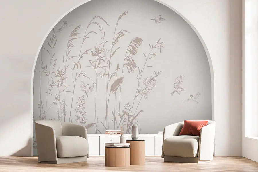 Και αυτά τα πουλιά! Είναι διάσπαρτα σαν μικρές νότες χαράς, προσθέτοντας ζωή και κίνηση στους τοίχους σας. Αυτή η τοιχογραφία έχει τον τρόπο να κάνει τα πάντα να μοιάζουν ήρεμα και φρέσκα, αλλά και διακριτικά ζωντανά. Δεν απαιτεί την προσοχή – την προσκαλεί ευγενικά. Ιδανική για όσους αγαπούν ένα άγγιγμα της φύσης χωρίς να βγαίνουν έξω.