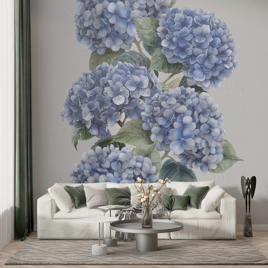 Μεταμορφώστε οποιοδήποτε δωμάτιο σε μια γαλήνια όαση κήπου με αυτή την εκπληκτική τοιχογραφία τοίχου με μπλε ορτανσίες σε λεπτή ανθοφορία. Φανταστείτε να μπαίνετε σε έναν χώρο που ανεβάζει αμέσως τη διάθεσή σας, όπου κάθε πέταλο μοιάζει να ψιθυρίζει τα μυστικά μιας καλοκαιρινής ημέρας. Είναι σαν να έχετε ένα μικρό κομμάτι της φύσης στους τοίχους σας. Οι απαλές αποχρώσεις και οι περίπλοκες λεπτομέρειες προσκαλούν μια ήπια ηρεμία, ιδανική για άνετες γωνιές ή ζωηρά σημεία συγκέντρωσης. Οι φίλοι σας θα θαυμάσουν τη μοναδική σας επιλογή διακόσμησης και ποιος ξέρει, μπορεί να εμπνεύσετε κάποιον να ασχοληθεί με την κηπουρική ή τουλάχιστον να εκτιμήσει λίγο περισσότερο την ομορφιά των λουλουδιών! Ιδανική για τους λάτρεις της φύσης και της τέχνης, αυτή η τοιχογραφία προσθέτει μια αναζωογονητική πινελιά σε κάθε εσωτερικό χώρο.