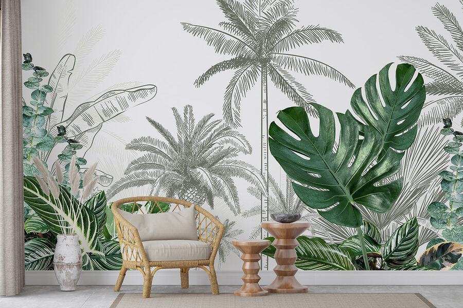 Θέλατε ποτέ να νιώσετε σαν να βρίσκεστε σε μια τροπική περιπέτεια μέσα στο σαλόνι σας; Πείτε γεια στην τοιχογραφία “Ταπετσαρίες w08184”! Αυτή η ομορφιά τυλίγει το χώρο σας με πλούσια βλάστηση και φύλλα φοίνικα, φέρνοντας την ατμόσφαιρα της ζούγκλας χωρίς την υγρασία. Ιδανική για όποιον ονειρεύεται να περιβάλλεται από τη φύση – αλλά, ξέρετε, με κλιματισμό. Φανταστείτε να χαλαρώνετε με ένα βιβλίο ή να διοργανώνετε μια συνάντηση όπου όλοι θα νιώθουν ότι βρίσκονται σε ένα νησί. Πιστέψτε με, δεν είναι απλώς διακόσμηση, είναι μια εμπειρία – μια μίνι διακοπή στον τοίχο σας! 🌴✨