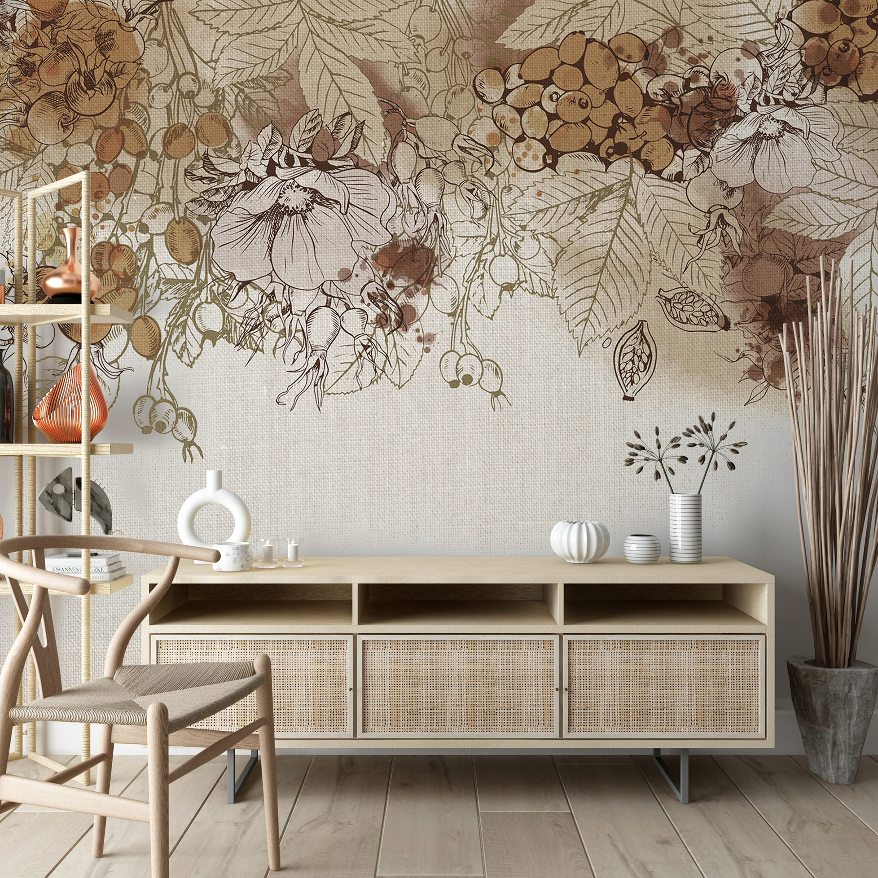 Μεταμορφώστε κάθε χώρο με τη γοητεία του Autumn Harvest σε τόνους Sepia. Αυτή η τοιχογραφία αποτυπώνει την ουσία του φθινοπώρου με λεπτά σχέδια και μια ζεστή, γήινη παλέτα που μοιάζει ζεστή και φιλόξενη. Φανταστείτε να κουλουριάζεστε με ένα φλιτζάνι ζεστό μηλίτη, ενώ ατενίζετε αυτή την ομορφιά στον τοίχο σας – είναι σαν να φέρνετε ένα άγγιγμα της συγκομιδής στο εσωτερικό! Το παιχνιδιάρικο παιχνίδι των απαλών χρωμάτων και των περίπλοκων λεπτομερειών εμπνέει ένα γαλήνιο, γεμάτο φύση όνειρο. Ιδανικό για ένα σαλόνι, είναι βέβαιο ότι θα προκαλέσει συζητήσεις. Οι λάτρεις της φύσης θα νιώσουν σαν στο σπίτι τους, σαν να περπατούν σε έναν ήσυχο οπωρώνα στα τέλη του φθινοπώρου, απολαμβάνοντας την ομορφιά της γενναιοδωρίας της φύσης. Προσθέστε το στους τοίχους σας και δείτε τον χώρο σας να ζωντανεύει με ζεστασιά και χαρακτήρα!