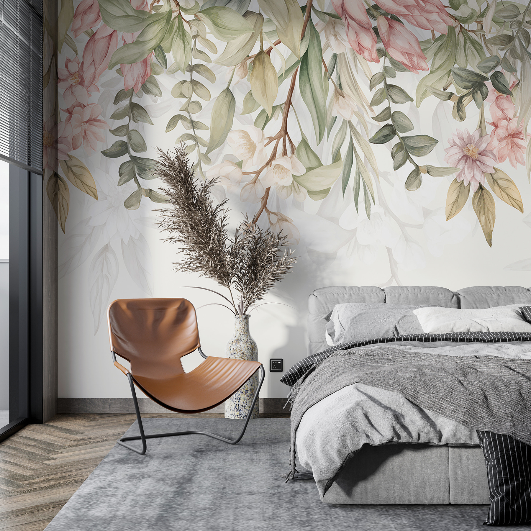 Ο συνδυασμός απαλών ροζ και διακριτικών πράσινων χρωμάτων δημιουργεί μια ηρεμιστική και φιλόξενη ατμόσφαιρα – ιδανική για έναν χαλαρό κυριακάτικο πρωινό καφέ ή για μια βραδινή χαλάρωση με ένα καλό βιβλίο. Σας κάνει να αισθάνεστε σαν να μπαίνετε σε ένα βοτανικό σκίτσο, προσφέροντας ακριβώς τη σωστή πινελιά φρεσκάδας και γαλήνης. Σκεφτείτε εκείνες τις μέρες που θέλετε απλώς να περιβάλλεστε από ομορφιά και απλότητα – αυτή η τοιχογραφία είναι η ιδανική σας επιλογή.