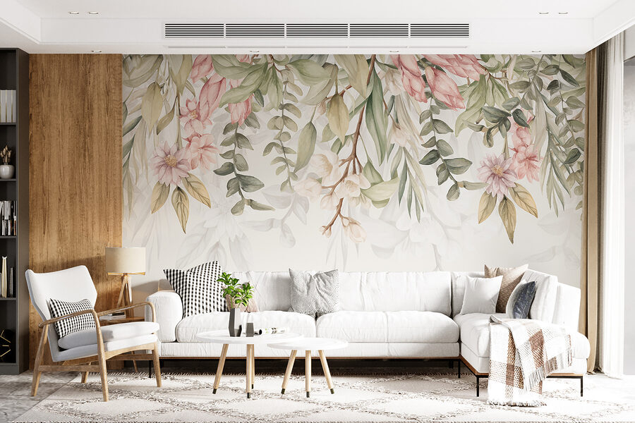Ο συνδυασμός απαλών ροζ και διακριτικών πράσινων χρωμάτων δημιουργεί μια ηρεμιστική και φιλόξενη ατμόσφαιρα – ιδανική για έναν χαλαρό κυριακάτικο πρωινό καφέ ή για μια βραδινή χαλάρωση με ένα καλό βιβλίο. Σας κάνει να αισθάνεστε σαν να μπαίνετε σε ένα βοτανικό σκίτσο, προσφέροντας ακριβώς τη σωστή πινελιά φρεσκάδας και γαλήνης. Σκεφτείτε εκείνες τις μέρες που θέλετε απλώς να περιβάλλεστε από ομορφιά και απλότητα – αυτή η τοιχογραφία είναι η ιδανική σας επιλογή.