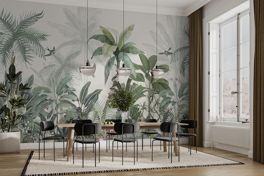 Μεταμορφώστε οποιονδήποτε χώρο σε τροπικό καταφύγιο με αυτή την εκπληκτική τοιχογραφία. Είναι σαν να έχετε ένα κομμάτι της ζούγκλας στο σπίτι σας, με πλούσια βλάστηση και χαρούμενα πουλιά που πετούν. Φανταστείτε να πίνετε τον πρωινό σας καφέ καθώς σας υποδέχονται απαλά, τροπικά vibes – σοβαρά, υπάρχει καλύτερος τρόπος να ξεκινήσετε τη μέρα σας; Αυτή η ταπετσαρία δεν αλλάζει απλώς το δωμάτιο, αλλά προσκαλεί τη φύση στο εσωτερικό του σπιτιού, ψιθυρίζοντας αεράτα απογεύματα και ηλιόλουστες περιπέτειες. Ιδανική για ένα σαλόνι ή ακόμη και για μια ζεστή γωνιά ανάγνωσης, είναι μια μικρή απόδραση ακριβώς στους τοίχους σας. Κάθε βλέμμα μοιάζει με μίνι-διακοπές, ακριβώς από την άνεση του σπιτιού.