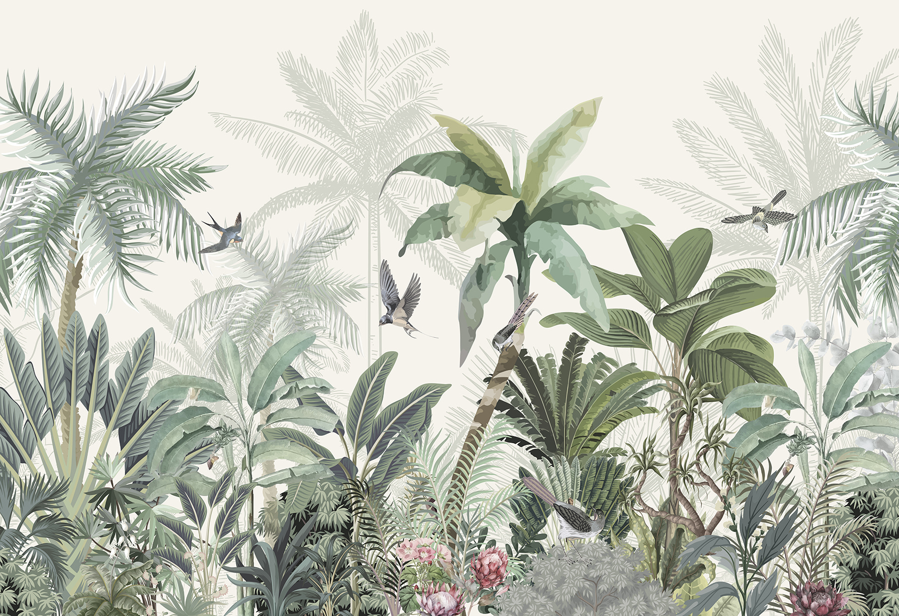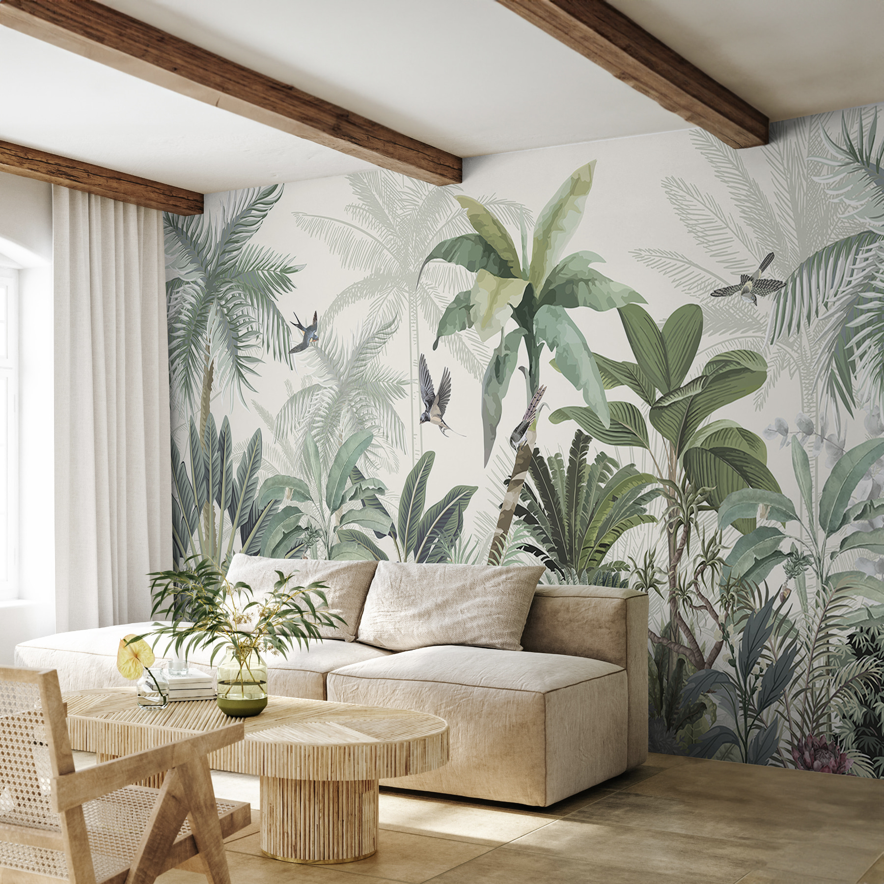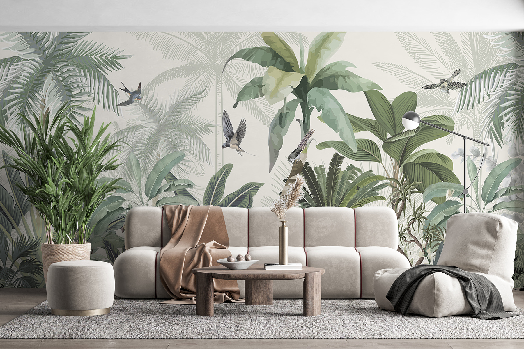 Μεταμορφώστε οποιονδήποτε χώρο σε τροπικό καταφύγιο με αυτή την εκπληκτική τοιχογραφία. Είναι σαν να έχετε ένα κομμάτι της ζούγκλας στο σπίτι σας, με πλούσια βλάστηση και χαρούμενα πουλιά που πετούν. Φανταστείτε να πίνετε τον πρωινό σας καφέ καθώς σας υποδέχονται απαλά, τροπικά vibes – σοβαρά, υπάρχει καλύτερος τρόπος να ξεκινήσετε τη μέρα σας; Αυτή η ταπετσαρία δεν αλλάζει απλώς το δωμάτιο, αλλά προσκαλεί τη φύση στο εσωτερικό του σπιτιού, ψιθυρίζοντας αεράτα απογεύματα και ηλιόλουστες περιπέτειες. Ιδανική για ένα σαλόνι ή ακόμη και για μια ζεστή γωνιά ανάγνωσης, είναι μια μικρή απόδραση ακριβώς στους τοίχους σας. Κάθε βλέμμα μοιάζει με μίνι-διακοπές, ακριβώς από την άνεση του σπιτιού.