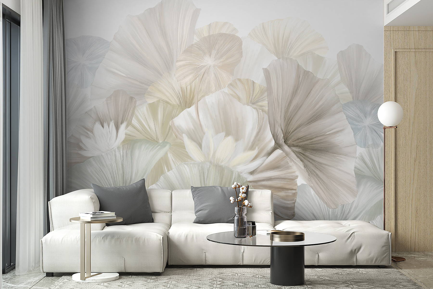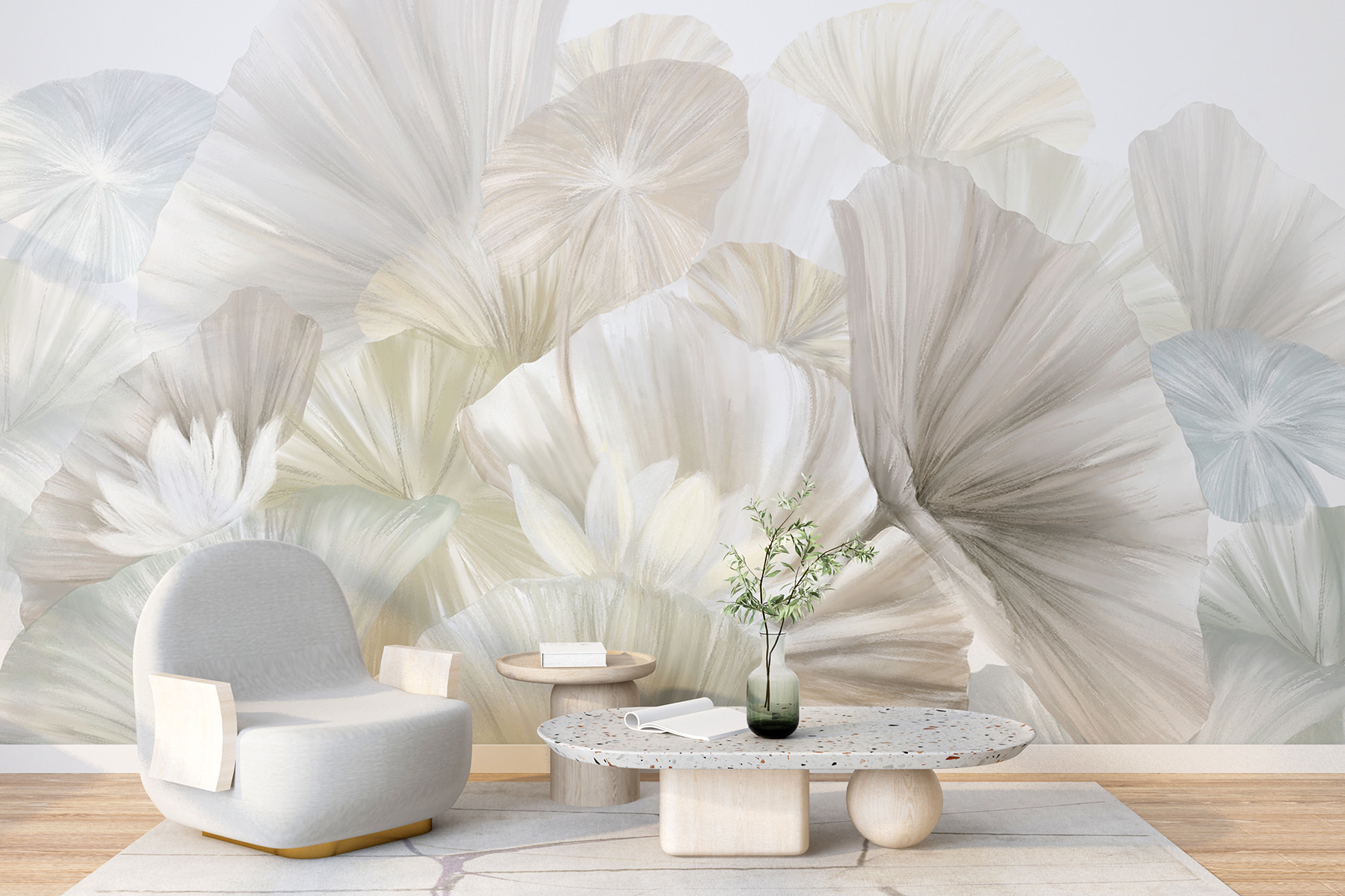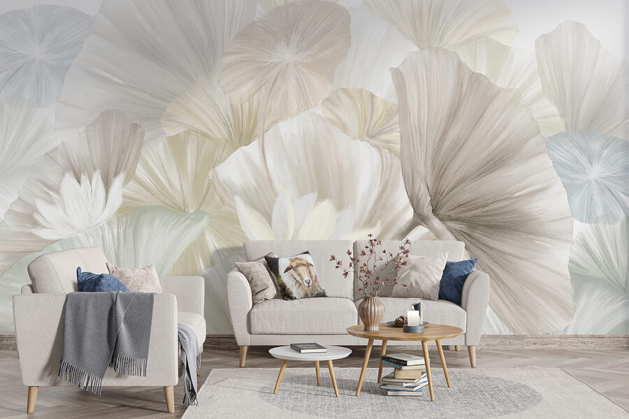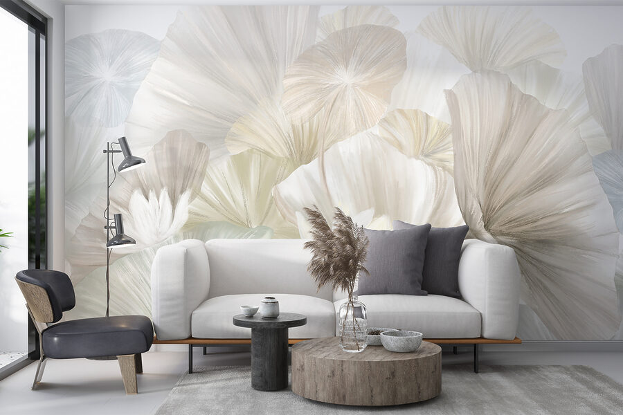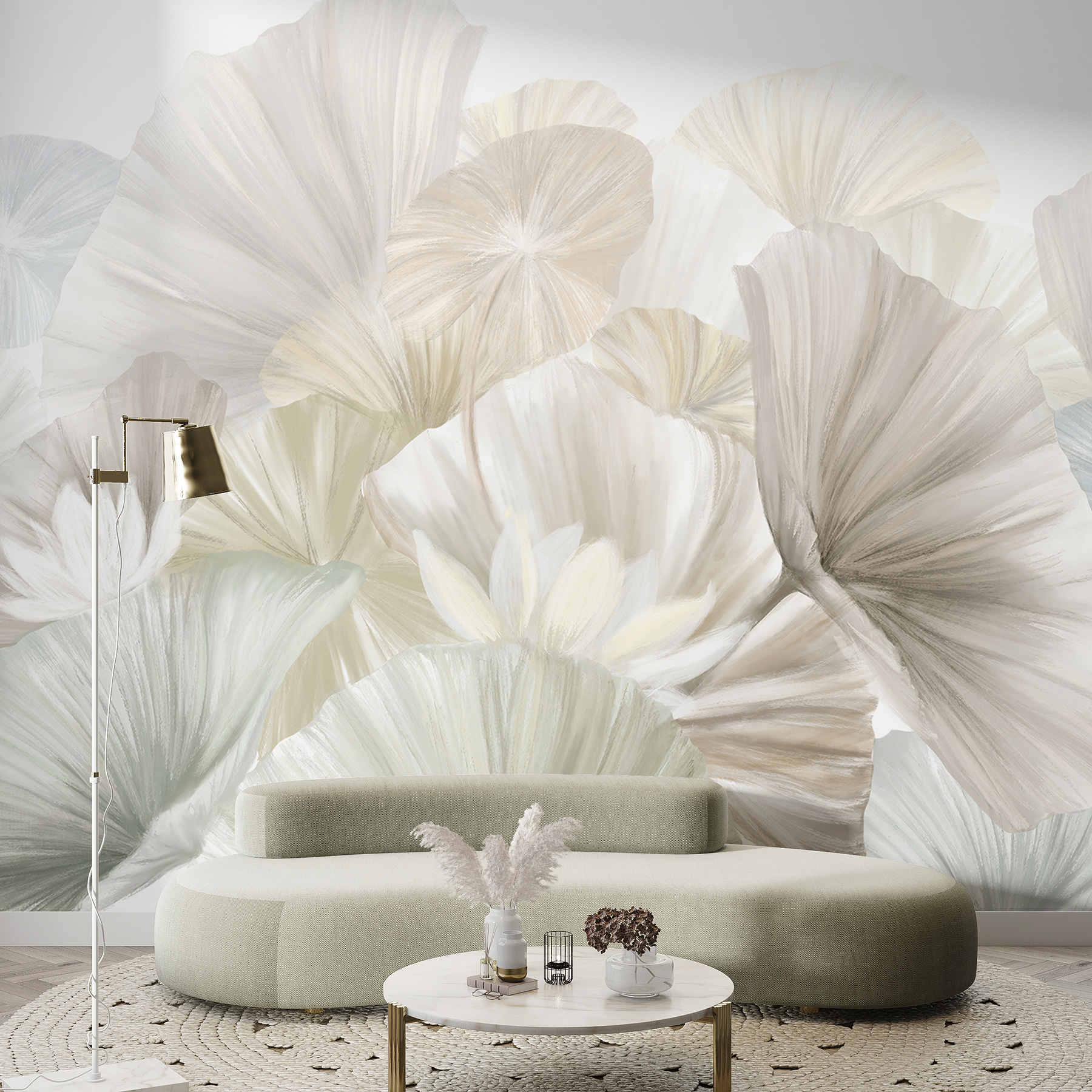 Φανταστείτε να μπαίνετε σε ένα δωμάτιο όπου οι τοίχοι του ψιθυρίζουν ταυτόχρονα ηρεμία και φύση. Αυτή η τοιχογραφία, “Ομάδα λευκών και γκρι φύλλων”, φέρνει αυτό το γαλήνιο άγγιγμα – σαν ένα απαλό πρωινό αεράκι. Οι υφές ακουαρέλας και οι απαλές αποχρώσεις μοιάζουν με μια ζεστή κουβέρτα για τα μάτια σας, προσκαλώντας μια στιγμή απόδρασης. Φανταστείτε να πίνετε τον πρωινό σας καφέ, χαμένοι στα καταπραϋντικά μοτίβα του- είναι σαν μια διαλογιστική παύση πριν ξεκινήσει η μέρα. Ιδανικό για να προσθέσετε μια επιπλέον δόση ηρεμίας σε κάθε χώρο!
