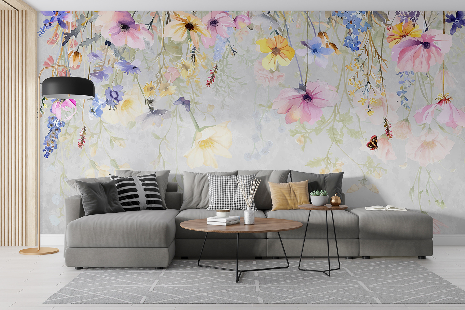 Φανταστείτε να μπαίνετε σε ένα δωμάτιο και να βρίσκεστε σε έναν ονειρικό κήπο όπου τα λουλούδια ψιθυρίζουν μυστικά και οι πεταλούδες φλερτάρουν παιχνιδιάρικα με το αεράκι. Αυτή η τοιχογραφία δεν μεταμορφώνει απλώς έναν τοίχο- σας μεταφέρει σε ένα λιβάδι γεμάτο παστέλ άνθη και ντελικάτα φτερά. Νιώστε την ηρεμία να σας κατακλύζει καθώς ο χώρος σας ανθίζει με ζωή – ιδανικό για να πυροδοτήσετε τη δημιουργικότητα ή απλά να χαλαρώσετε μετά από μια ταραχώδη μέρα. Είναι σαν να προσκαλείτε ένα ανοιξιάτικο πρωινό στο σπίτι σας, χωρίς να χρειάζεται να ποτίσετε τίποτα. Η προσωπική σας όαση, χωρίς τα έντομα!