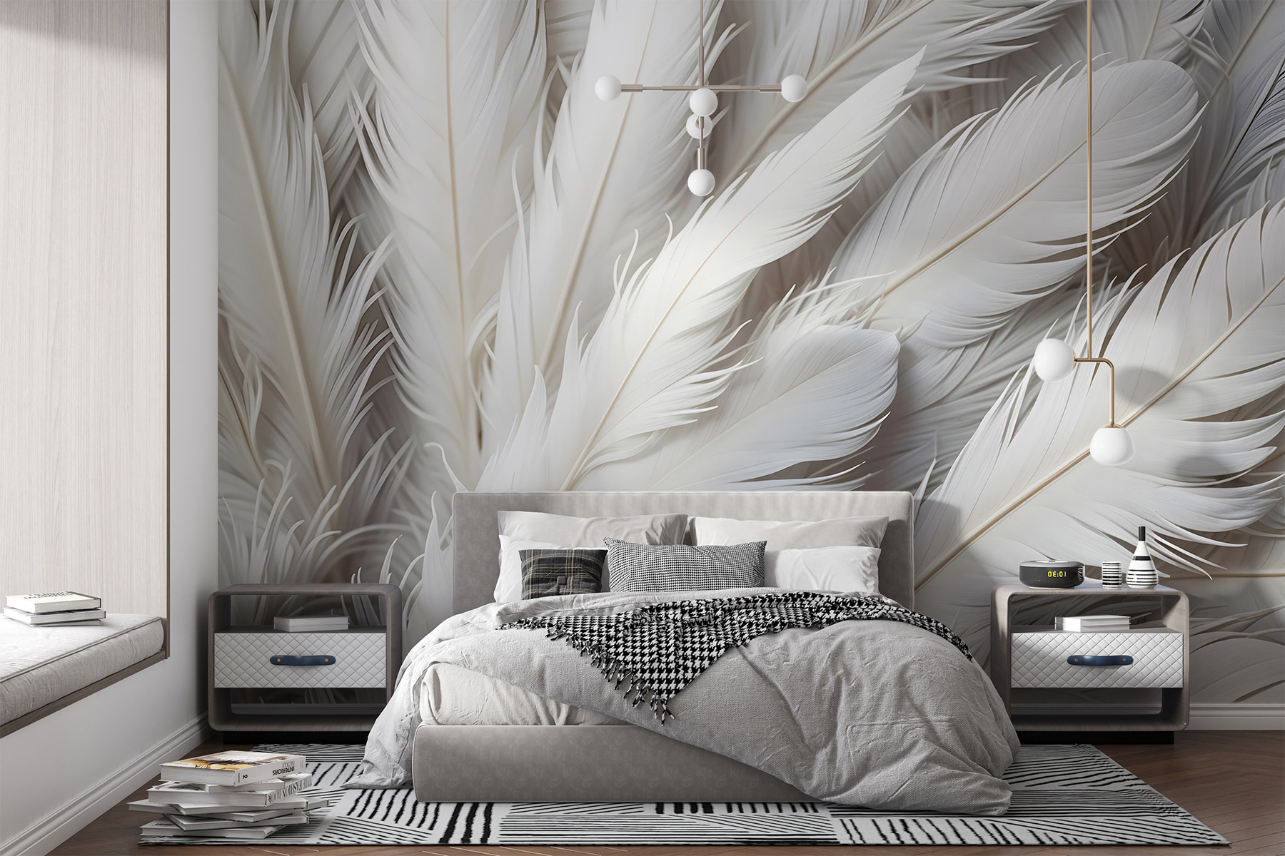 Φανταστείτε να έχετε ένα σμήνος λεπτεπίλεπτων φτερών ακριβώς στο σαλόνι σας – που ψιθυρίζουν κομψότητα, όχι λιγότερο. Αυτή η τοιχογραφία “Ομάδα λευκών φτερών” είναι ιδανική για εκείνες τις στιγμές που θέλετε ο χώρος σας να μοιάζει με μια γαλήνια φωλιά. Δεν είναι απλώς τέχνη τοίχου- είναι ένα όνειρο που μπορείτε να περνάτε από δίπλα του κάθε πρωί. Τα απαλά λευκά χρώματα και οι απαλές καμπύλες υπόσχονται να δώσουν μια αίσθηση ηρεμίας και ιδιοτροπίας στην ημέρα σας. Φανταστείτε αυτό: αράζοντας σε μια άνετη καρέκλα κάτω από τη λάμψη των βραδινών φώτων, το δωμάτιο μοιάζει με ιερό. Φτερωτό, αλλά αξέχαστο.