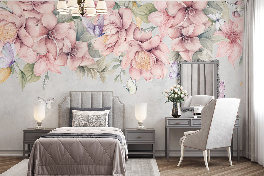 Φανταστείτε να ξυπνάτε με αυτή την τοιχογραφία κάθε πρωί. Πεταλούδες που χαλαρώνουν ανάμεσα σε πλούσια άνθη – είναι σαν η φύση να πατάει παύση για μια στιγμή. Τα απαλά παστέλ χρώματα και οι δονήσεις ακουαρέλας μετατρέπουν κάθε δωμάτιο σε μια γαλήνια γωνιά. Ιδανικό για να προσθέσετε μια πινελιά ιδιοτροπίας στον τοίχο σας χωρίς να λερώσετε τα χέρια σας. Είναι σαν να έχετε τον δικό σας μαγικό κήπο που δεν χρειάζεται πότισμα. Είτε είστε λάτρης των λουλουδιών είτε απλώς αγαπάτε τα όμορφα πράγματα, αυτό είναι έναυσμα για συζήτηση και ανύψωση της διάθεσης, όλα μαζί.