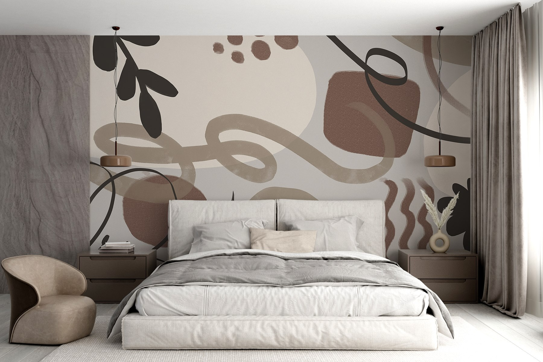 Μεταμορφώστε έναν απλό τοίχο σε ένα άνετο καταφύγιο με αυτή την εκπληκτική τοιχογραφία “Αφηρημένα σχήματα σε γήινους τόνους”. Φανταστείτε να μπαίνετε σε ένα δωμάτιο όπου τα απαλά καφέ, τα κρεμώδη λευκά και τα απαλά μαύρα χορεύουν μαζί, δημιουργώντας μια φιλόξενη ατμόσφαιρα. Είναι σαν μια ζεστή αγκαλιά για τους τοίχους σας. Ιδανική για ένα χαλαρό σαλόνι ή έναν εμπνευσμένο από το ζεν χώρο εργασίας, αυτή η τοιχογραφία ενθαρρύνει αυτές τις στιγμές “μόνο ένα φλιτζάνι καφέ ακόμα”. Τα παιχνιδιάρικα σχήματα και τα καταπραϋντικά χρώματα πυροδοτούν τη δημιουργικότητα, καθιστώντας δύσκολο να μην ονειροπολήσετε. Είναι τέχνη τοίχου που μοιάζει λιγότερο με διακόσμηση και περισσότερο με φίλο στον οποίο μπορείτε να στηριχτείτε!