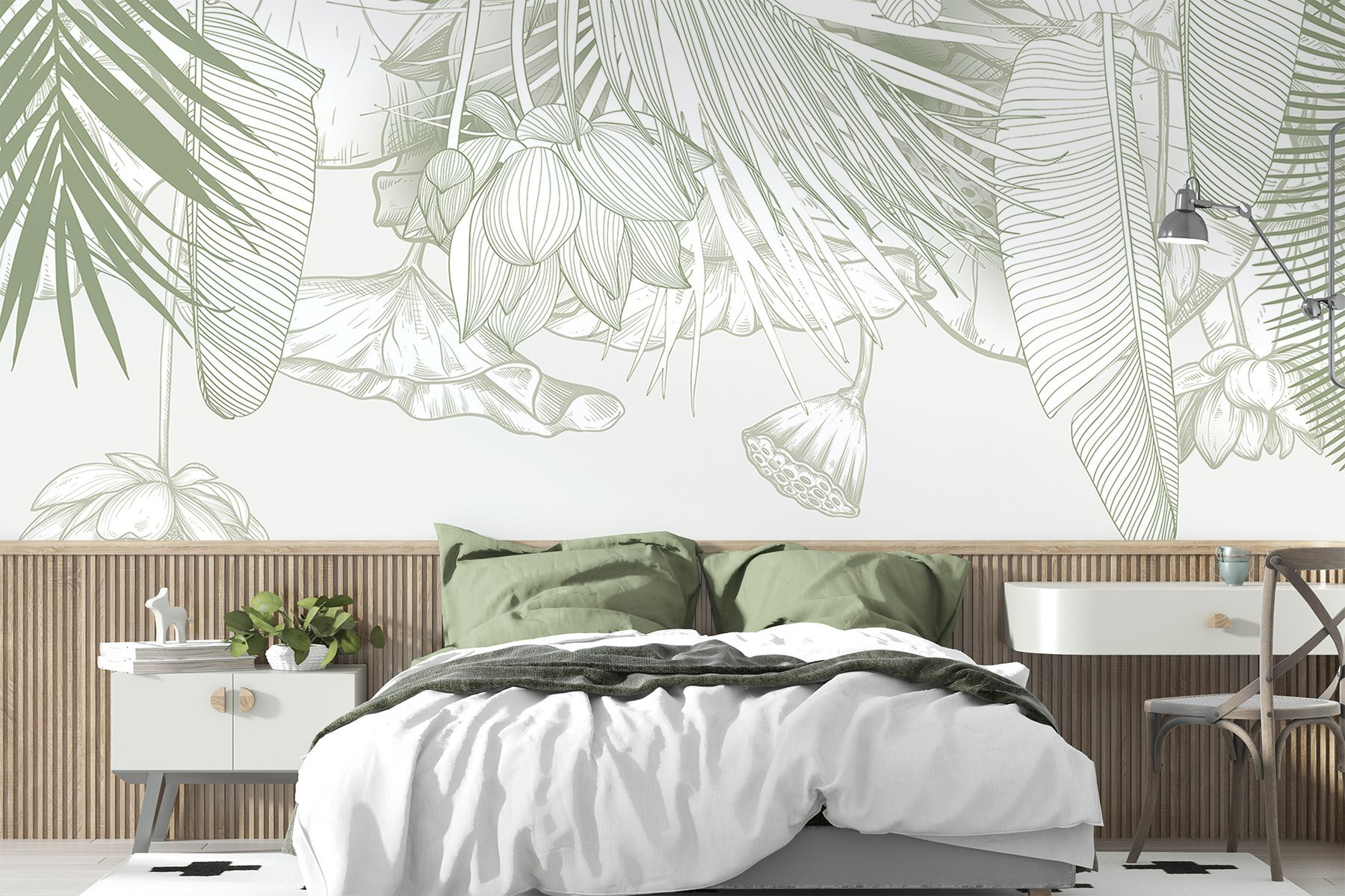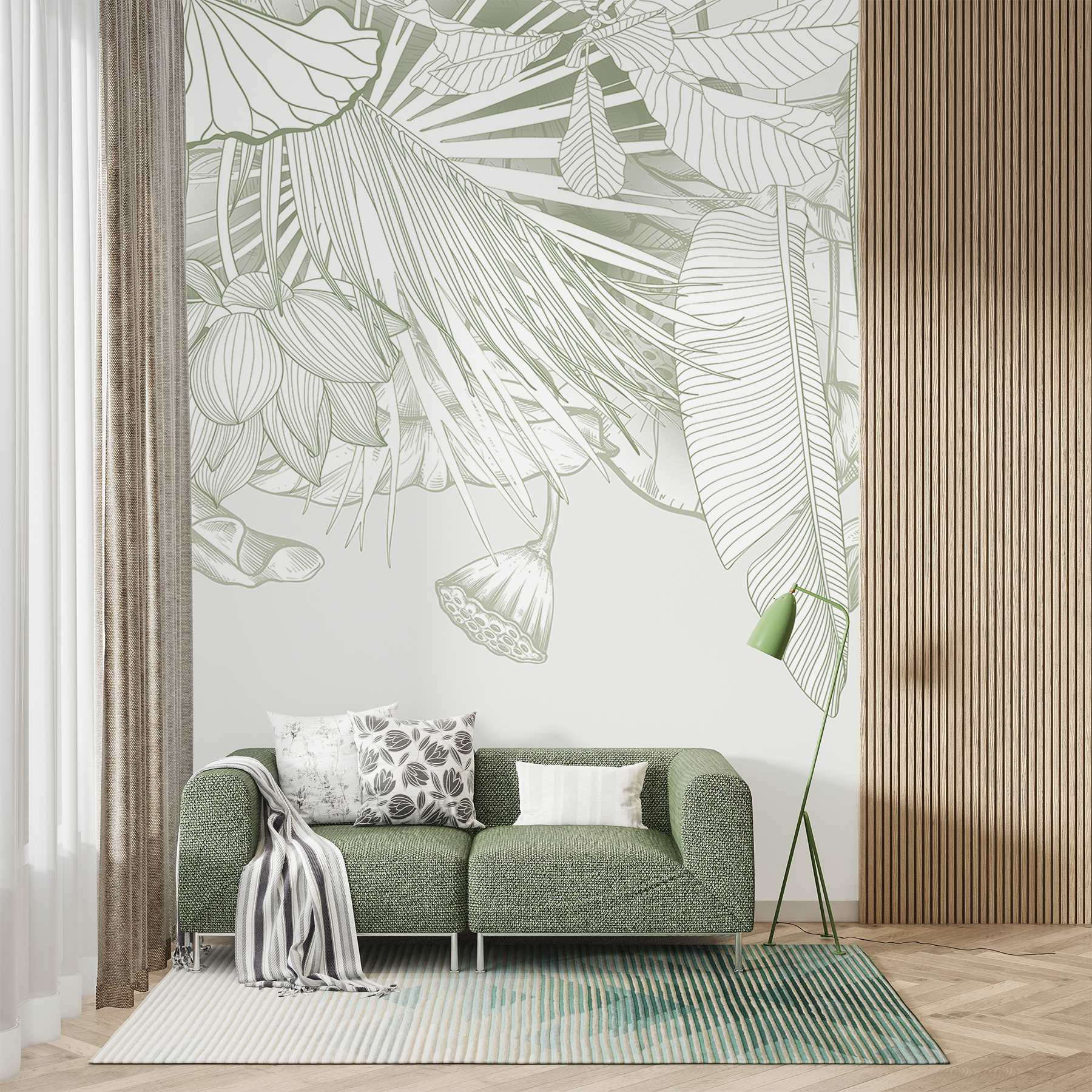 Μεταμορφώστε οποιοδήποτε δωμάτιο σε μια γαλήνια όαση με αυτή την εκπληκτική τοιχογραφία τοίχου με περίτεχνα φυλλώματα σε απαλές αποχρώσεις. Είναι σαν να φέρνετε ένα κομμάτι από τους τροπικούς στον χώρο σας, χωρίς την υγρασία! Φανταστείτε να πίνετε τον πρωινό σας καφέ ενώ περιβάλλεστε από λεπτεπίλεπτα φύλλα και άνθη – μιλάμε για μια ατμόσφαιρα που θα σας φτιάξει τη διάθεση! Ιδανική για μια ζεστή γωνιά ανάγνωσης ή μια ζωντανή τραπεζαρία, αυτή η τοιχογραφία προσθέτει ακριβώς τη σωστή πινελιά φύσης. Επιπλέον, τα απαλά χρώματα προσκαλούν ήρεμες δονήσεις, κάνοντάς σας να αισθάνεστε χαλαροί και εμπνευσμένοι. Ποιος ήξερε ότι οι τοίχοι θα μπορούσαν να είναι τόσο αναζωογονητικοί;