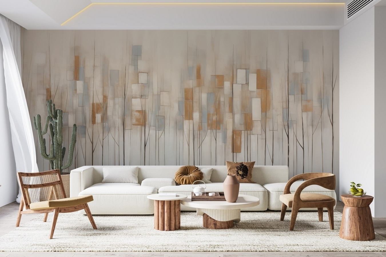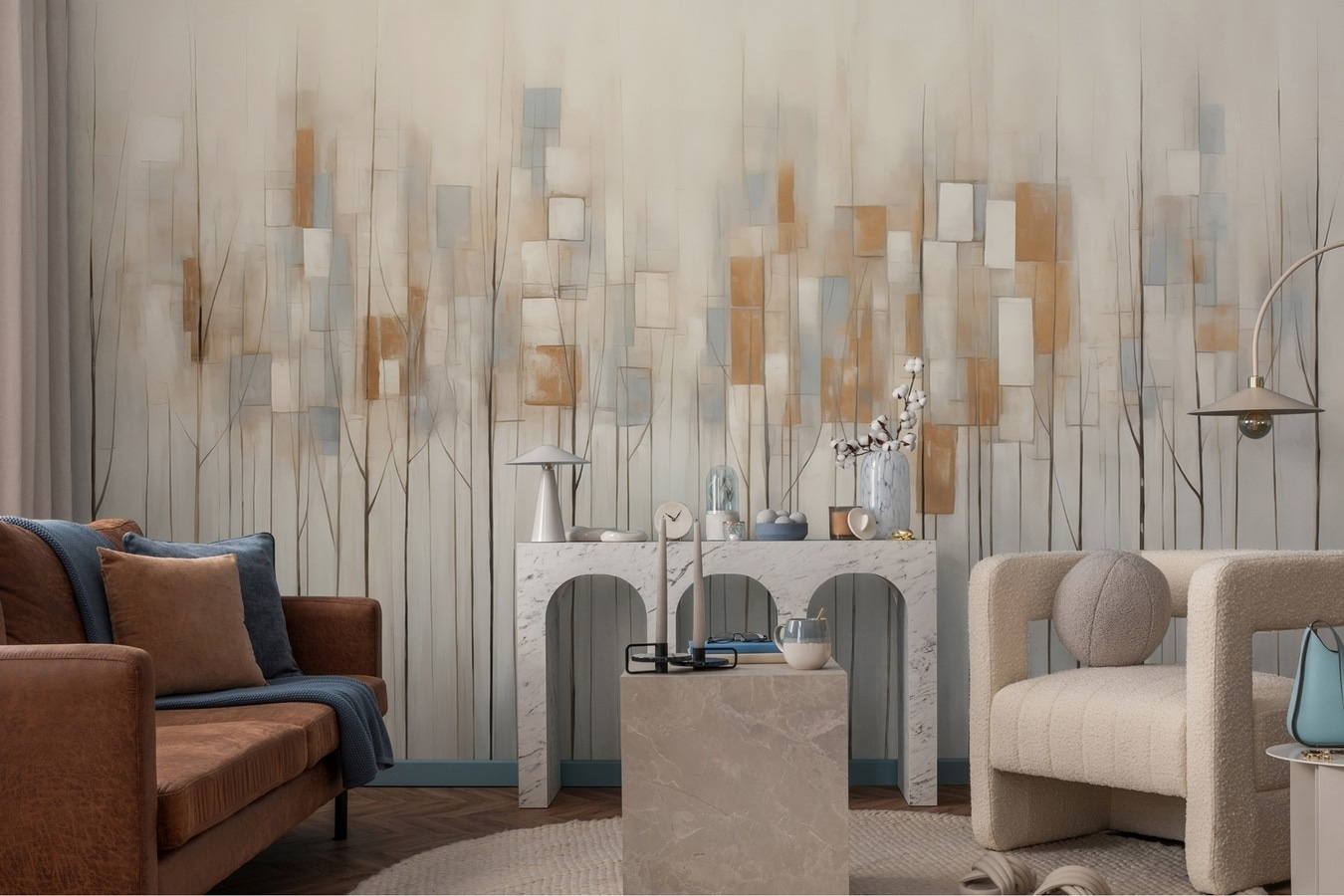 Μεταμορφώστε οποιοδήποτε δωμάτιο σε ένα ζεστό καταφύγιο με αυτή την εκπληκτική τοιχογραφία με δέντρα και μαλακά, τετράγωνα σχήματα. Φανταστείτε να μπαίνετε στο χώρο σας και να αισθάνεστε αυτή τη στιγμιαία ατμόσφαιρα ηρεμίας – σαν μια βόλτα στο πάρκο, αλλά χωρίς το πραγματικό περπάτημα. Τα απαλά χρώματα συνδυάζονται τέλεια, φέρνοντας ένα άγγιγμα φύσης στους εσωτερικούς χώρους, ενώ παραμένουν κομψά μοντέρνα. Σπέρνει χαρά και ίσως ακόμη και λίγη έμπνευση για εκείνο το έργο τέχνης που θέλατε να ξεκινήσετε. Κρεμάστε το στο σαλόνι ή στο γραφείο του σπιτιού σας και αφήστε το γαλήνιο τοπίο να κάνει τη μαγεία του. Ίσως βρεθείτε να ονειρεύεστε τεμπέλικα απογεύματα που περνάτε κάτω από αυτά τα δέντρα!