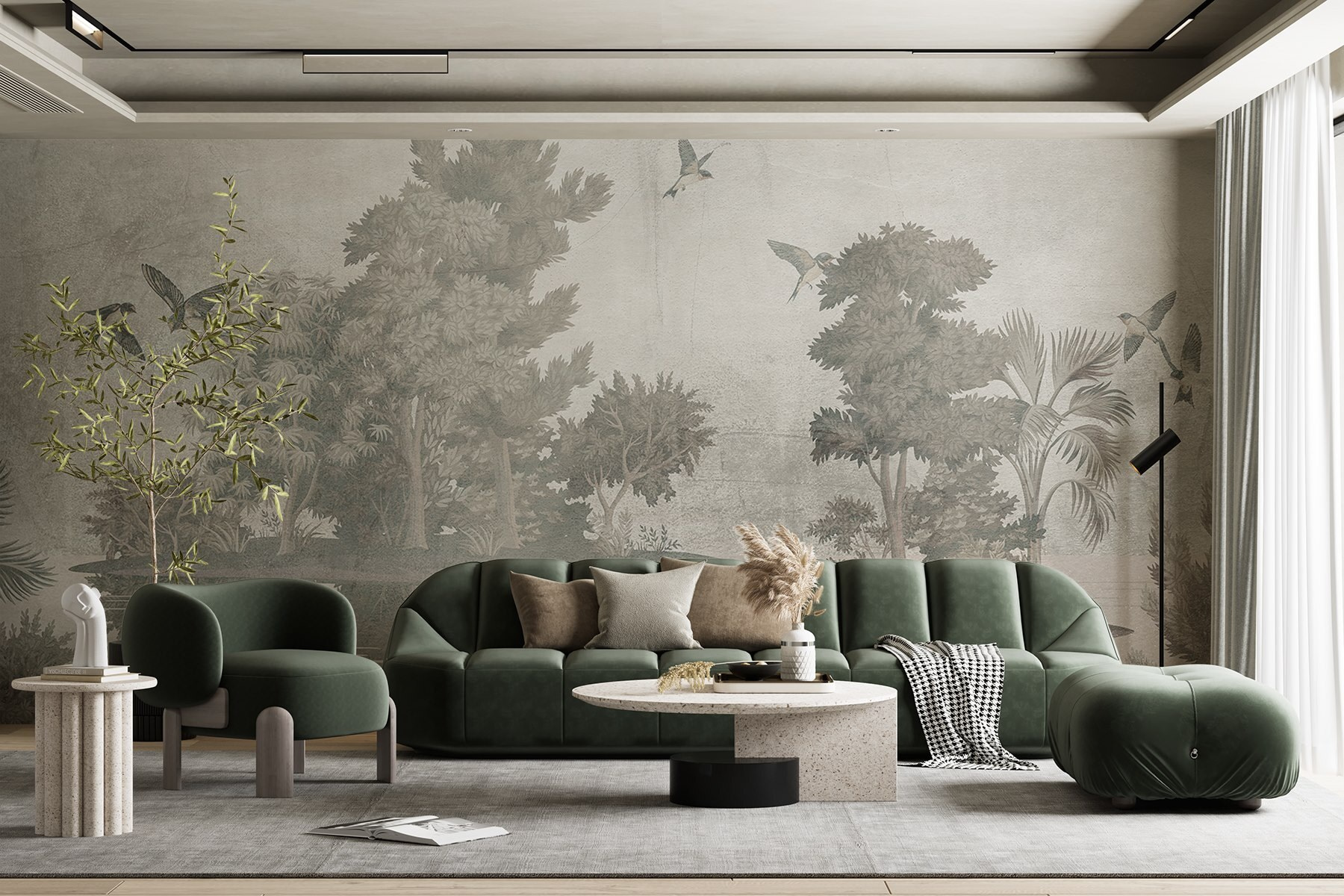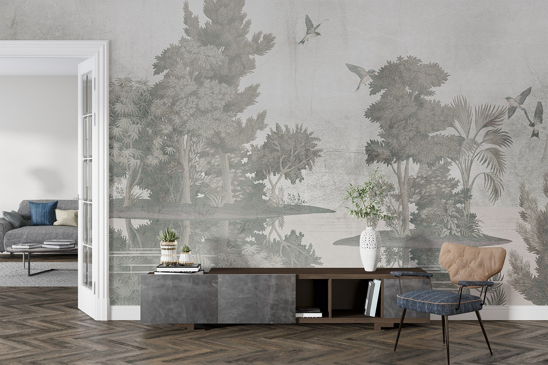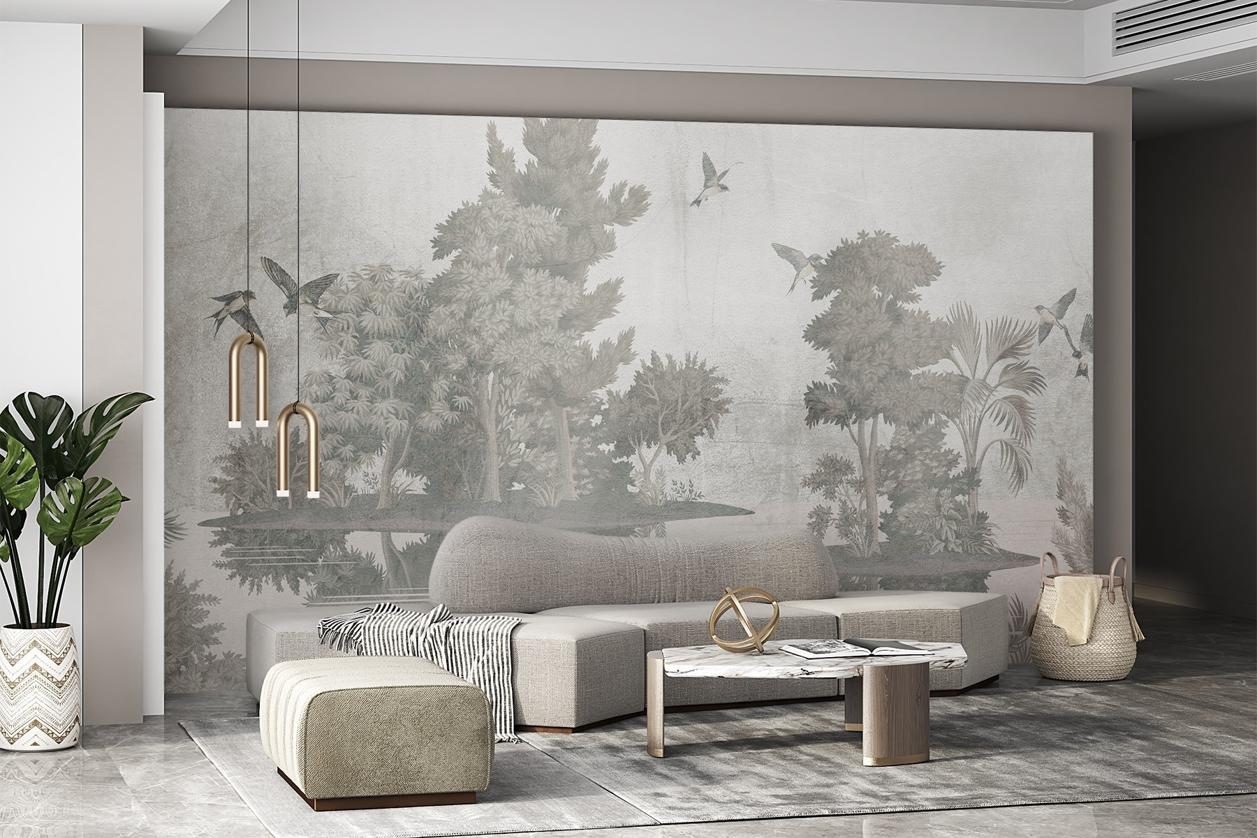 Φανταστείτε να μπαίνετε σε ένα γαλήνιο δάσος, όπου τα πουλιά πετούν πάνω από ευγενικά δέντρα – αυτή η τοιχογραφία κάνει ακριβώς αυτό! Το “Πουλιά που πετούν πάνω από δέντρα” προσφέρει μια καταπραϋντική απόδραση στους τοίχους σας. Τα απαλά χρώματα και το λεπτό έργο τέχνης δημιουργούν μια ειρηνική ατμόσφαιρα, ιδανική για να μετατρέψετε οποιονδήποτε χώρο σε καταφύγιο για τους λάτρεις της φύσης. Φανταστείτε άνετα βράδια με ένα καλό βιβλίο, με τους απαλούς ψιθύρους των δέντρων να σας περιβάλλουν. Είναι σαν να έχετε ένα ήσυχο δασικό καταφύγιο στο σπίτι σας! Επιπλέον, αυτά τα ιπτάμενα πουλιά φαίνονται σχεδόν ζωντανά- ποιος δεν θα ήθελε λίγη μαγεία της φύσης στο σπίτι του; Ιδανικό για σαλόνια, υπνοδωμάτια ή οποιαδήποτε γωνιά που θα μπορούσε να χρησιμοποιήσει ένα άγγιγμα από την ύπαιθρο. Επίσης, είναι έναυσμα για συζήτηση – οι άνθρωποι σίγουρα θα προσέξουν αυτή την ομορφιά!