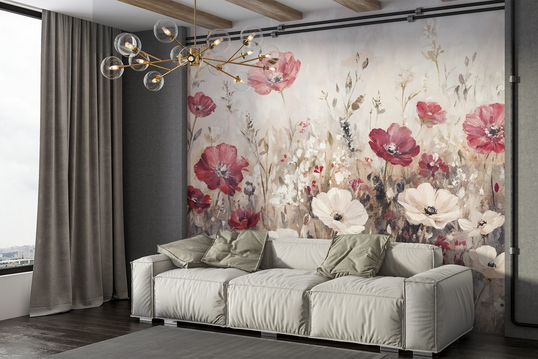 Μεταμορφώστε οποιοδήποτε δωμάτιο σε μια γαλήνια απόδραση με αυτή την εκπληκτική τοιχογραφία με λουλούδια που χορεύουν στο αεράκι. Φανταστείτε το: το φως του ήλιου να μπαίνει μέσα και αυτά τα όμορφα άνθη σε απαλό κόκκινο και λευκό να πέφτουν σαν καταρράκτης στον τοίχο σας, σαν έργο τέχνης της ίδιας της φύσης. Είναι σαν να φέρνετε μια φρέσκια ανοιξιάτικη μέρα στο σπίτι – χωρίς ενοχλητική γύρη, φυσικά! Αυτή η τοιχογραφία ακουαρέλας είναι ιδανική για ένα άνετο σαλόνι ή ένα ηρεμιστικό υπνοδωμάτιο. Φανταστείτε να χαλαρώνετε με ένα βιβλίο, περιτριγυρισμένοι από αυτή τη φυσική ομορφιά. Άμεση βελτίωση της διάθεσης, σωστά; Ο τοίχος σας δεν είναι πια απλώς ένας τοίχος- είναι ένας ανθισμένος παράδεισος.