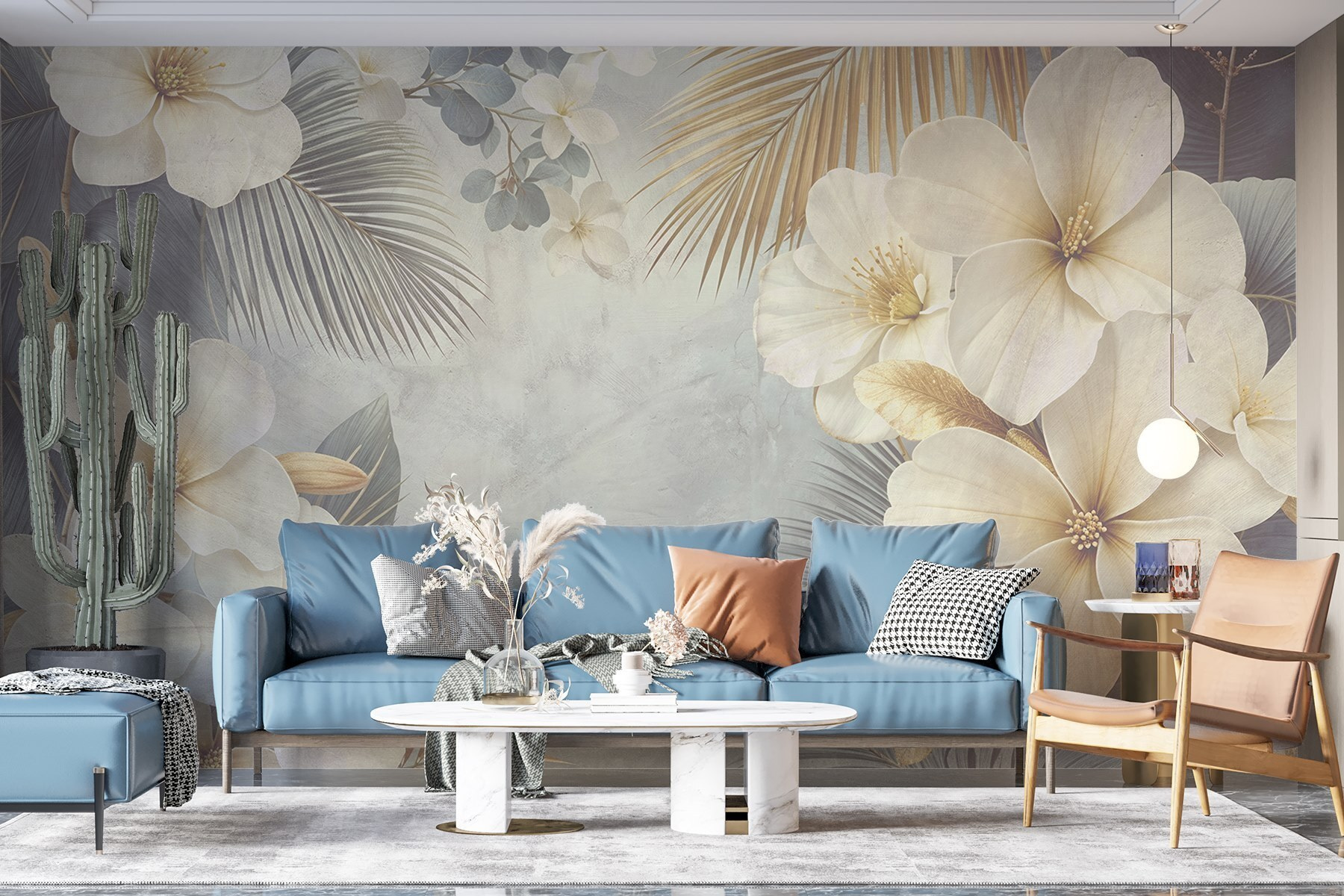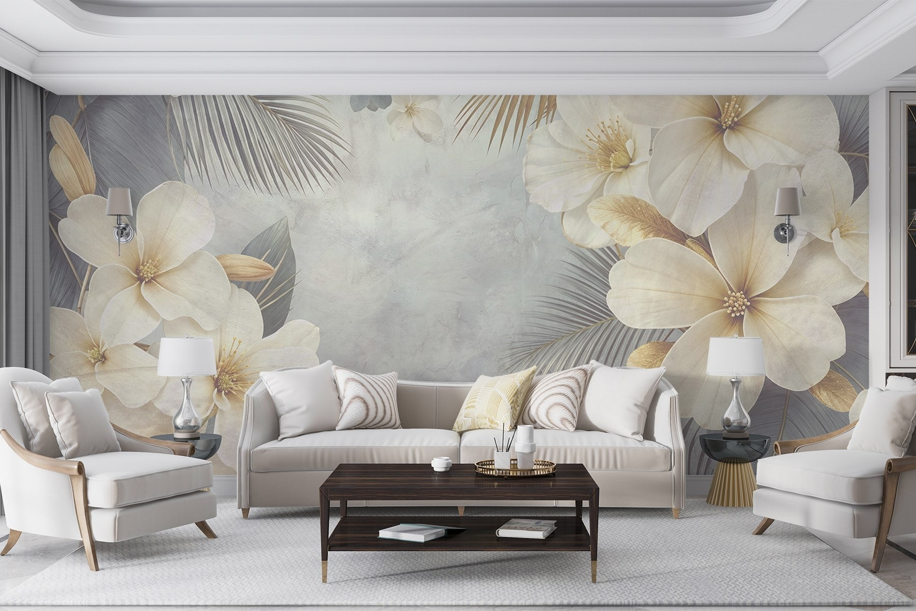 Μεταμορφώστε το χώρο σας με αυτές τις πανέμορφες τοιχογραφίες λευκών λουλουδιών και φύλλων. Φανταστείτε να μπαίνετε σε έναν αναζωογονητικό κήπο κάθε φορά που μπαίνετε στο δωμάτιο. Οι απαλές αποχρώσεις και οι λεπτές λεπτομέρειες μπορούν να χαρίσουν ένα χαμόγελο στο πρόσωπο οποιουδήποτε, όπως ένα απαλό ανοιξιάτικο αεράκι. Είναι ιδανικό για μια ζεστή γωνιά ανάγνωσης ή ακόμα και για έναν ζωντανό τοίχο έμφασης στο σαλόνι σας – προσθέστε μια άνετη καρέκλα, ένα αχνιστό φλιτζάνι τσάι και είστε έτοιμοι. Επιπλέον, ποιος δεν αγαπάει μια καλή φλοράλ ατμόσφαιρα; Θα νιώθετε σαν να περιβάλλεστε από τη φύση, ακόμη και αν βρίσκεστε σε εσωτερικό χώρο. Είναι σχεδόν σαν να έχετε έναν μυστικό κήπο – χωρίς το ξεχορτάριασμα!