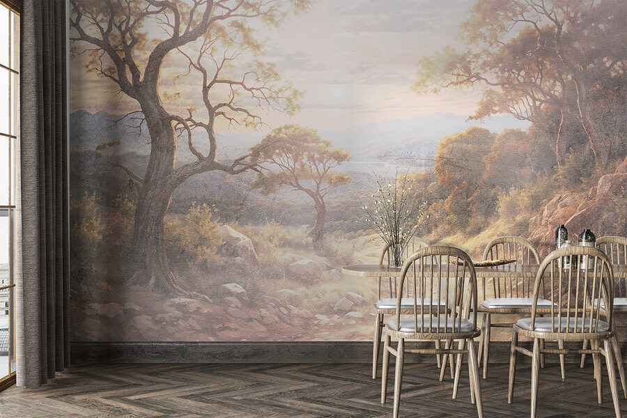 Μεταμορφώστε οποιοδήποτε δωμάτιο σε μια γαλήνια απόδραση με αυτή τη μαγευτική τοιχογραφία τοίχου, με έναν ελικοειδή χωματόδρομο που πλαισιώνεται από επιβλητικά δέντρα και μακρινά βουνά. Φανταστείτε να μπαίνετε σε ένα γαλήνιο καταφύγιο κάθε φορά που μπαίνετε στο χώρο σας. Τα απαλά χρώματα και οι απαλές υφές σας προσελκύουν, σαν να σας προσκαλούν να περπατήσετε σε αυτό το ονειρικό μονοπάτι. Ιδανικό για σαλόνια ή γωνιές ανάγνωσης, ψιθυρίζει ηρεμία και φέρνει την ομορφιά της φύσης στους εσωτερικούς χώρους. Απλά σκεφτείτε – οι φίλοι μπορεί να αρχίσουν να ρωτούν αν έχετε μετακομίσει στην εξοχή! Ανανεώστε τους τοίχους σας και αφήστε τις χαλαρωτικές δονήσεις να ρέουν- αυτή η τοιχογραφία έχει να μοιραστεί τη μαγεία της φύσης.