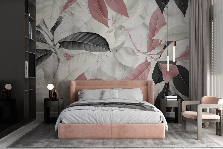 Μεταμορφώστε κάθε χώρο σε ένα γαλήνιο καταφύγιο με την “Παλέτα της Φύσης σε απαλές αποχρώσεις”. Αυτή η τοιχογραφία δίνει την εντύπωση ότι λιάζεσαι κάτω από ένα καταπράσινο στέγαστρο, αλλά χωρίς τα έντομα ή τη γύρη – δόξα τω Θεώ! Τα λεπτεπίλεπτα φύλλα σε απαλό ροζ, απαλό λευκό και βαθύ μαύρο χορεύουν στον τοίχο σας, ψιθυρίζοντας ήρεμες δονήσεις. Φανταστείτε να αράζετε με το αγαπημένο σας βιβλίο, περιτριγυρισμένοι από αυτές τις απαλές αποχρώσεις, σαν να σας αγκαλιάζει η ίδια η φύση.