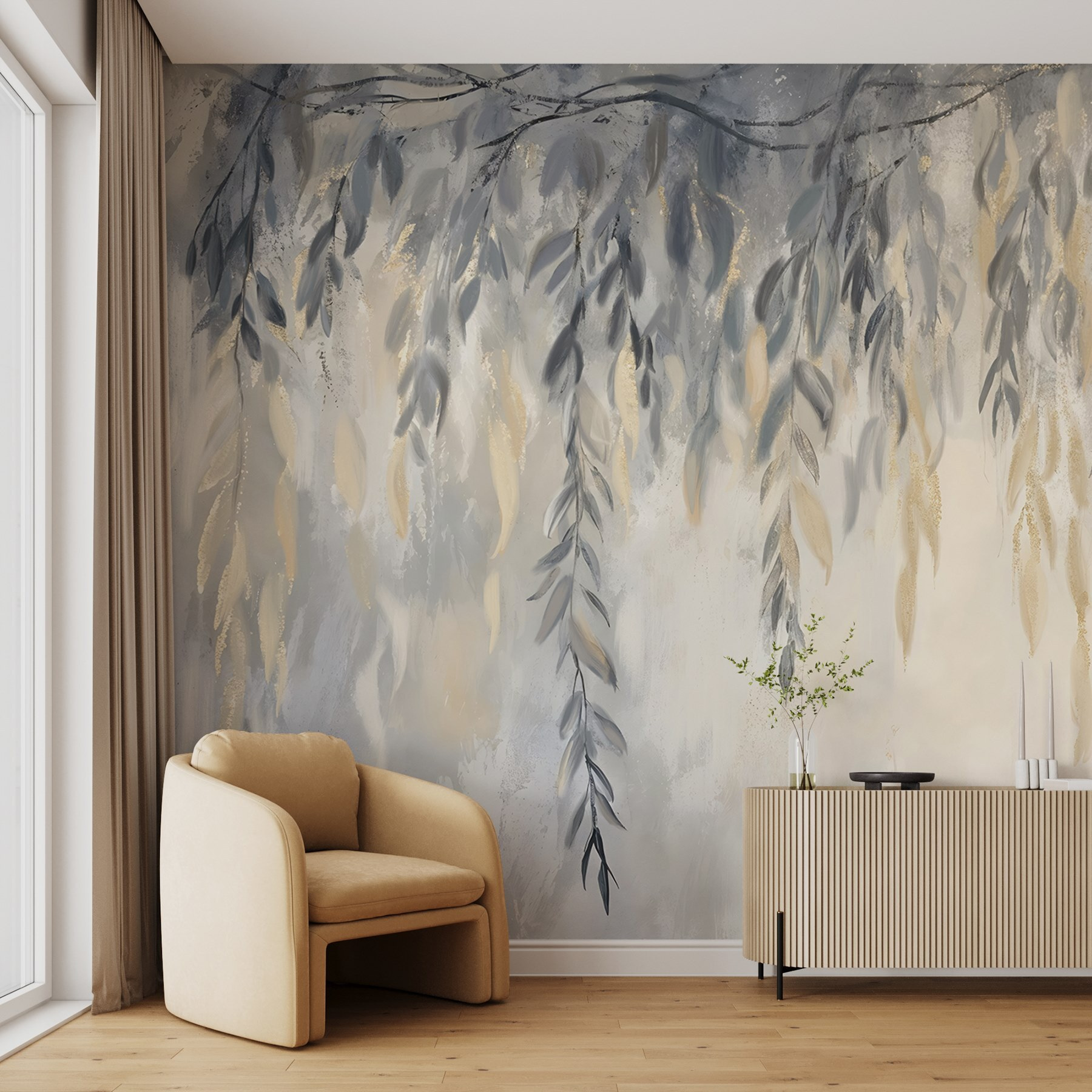 Μεταμορφώστε οποιονδήποτε χώρο με αυτή τη μαγευτική τοιχογραφία τοίχου, “Ταπετσαρίες Painting of a Tree Branch”. Φανταστείτε να μπαίνετε σε ένα δωμάτιο και να σας υποδέχονται λεπτά, καταρρακτώδη φύλλα σε απαλές γκρι και ζεστές αποχρώσεις. Είναι σαν να φέρνετε έναν ήρεμο κήπο στους εσωτερικούς χώρους, χωρίς τα ενοχλητικά ζωύφια! Αυτό το σχέδιο ακουαρέλας είναι ιδανικό για όποιον επιθυμεί ένα άγγιγμα της φύσης χωρίς τη συντήρηση.