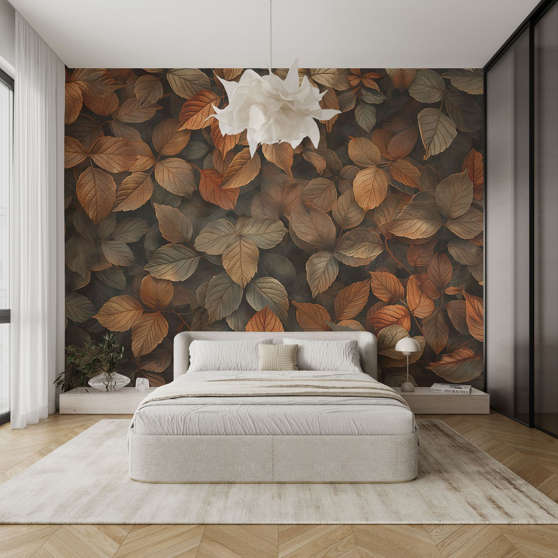 Μεταμορφώστε το χώρο σας σε μια ζεστή δασική απόδραση με την τοιχογραφία “Group of Brown Leaves”. Φανταστείτε να μπαίνετε σε ένα δωμάτιο όπου η φύση σας υποδέχεται στην πόρτα, ψιθυρίζοντας σας γλυκά λόγια για ηρεμία. Οι πλούσιες, ζεστές αποχρώσεις του καφέ και τα διακριτικά πράσινα δημιουργούν μια φιλόξενη ατμόσφαιρα – ιδανική για να χαλαρώσετε με ένα καλό βιβλίο ή να πιείτε το αγαπημένο σας τσάι. Είναι σαν να έχετε το δικό σας δάσος χωρίς ενοχλητικά ζωύφια. Οι φίλοι σας μπορεί να σας ρωτήσουν αν έχετε αρχίσει να αγκαλιάζετε δέντρα. Μια τοιχογραφία τόσο γοητευτική δεν διακοσμεί απλώς- αφηγείται ιστορίες, προκαλεί ονειροπολήσεις και κάνει κάθε στιγμή λίγο πιο μαγική. Φέρτε ένα άγγιγμα φύσης στους εσωτερικούς χώρους και αφήστε τη γοητεία των φθινοπωρινών φύλλων να κάνει κάθε μέρα να μοιάζει με βόλτα στο δάσος.