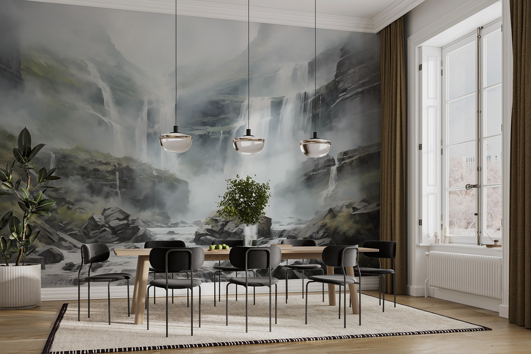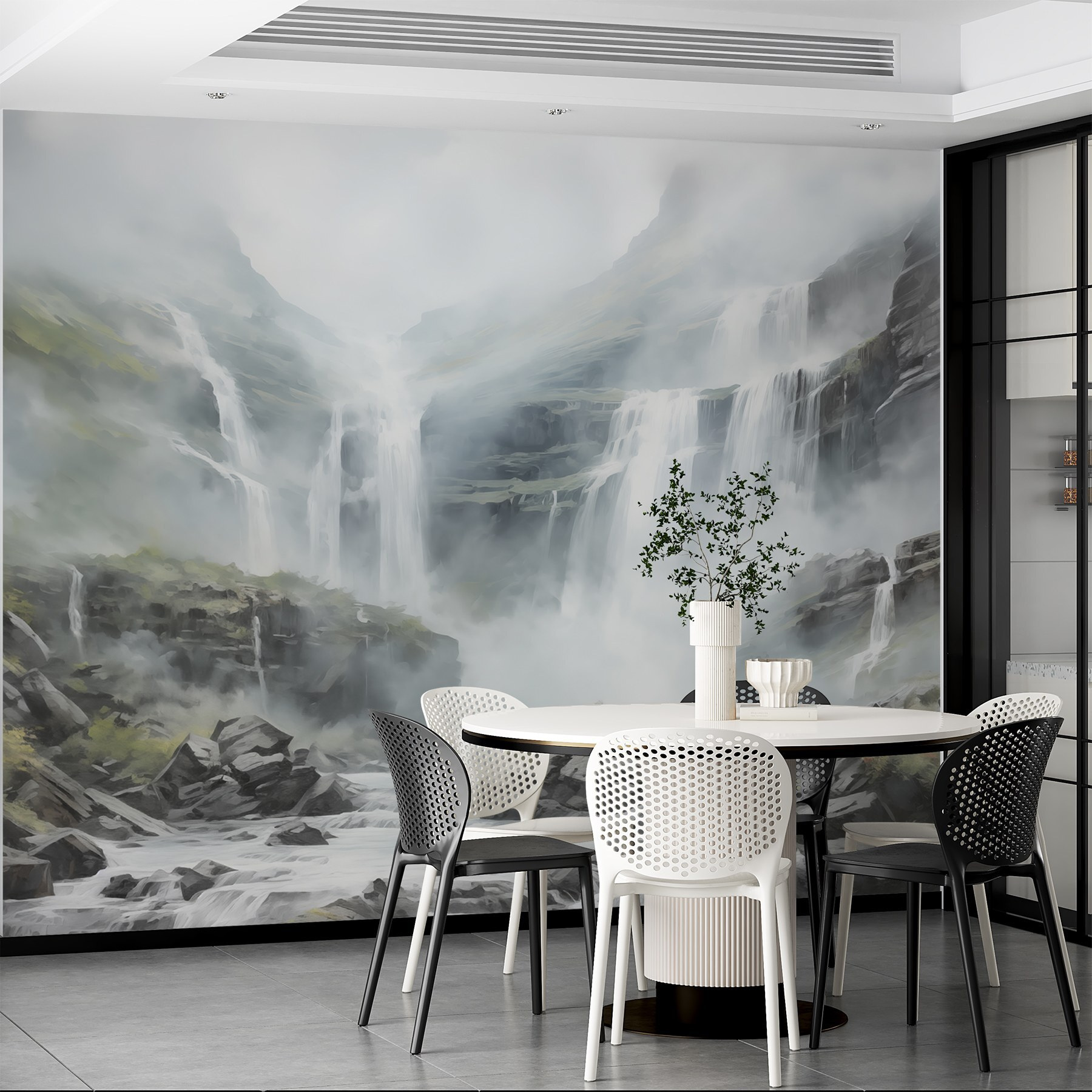 Φανταστείτε να μπαίνετε σε μια γαλήνια απόδραση κάθε φορά που κοιτάζετε τον τοίχο σας. Αυτή η τοιχογραφία, “Καταρράκτης σε ομιχλώδη βουνά”, αποτυπώνει τέλεια αυτή τη μαγεία. Φανταστείτε καταρράκτες ντυμένους με απαλή ομίχλη, περιτριγυρισμένους από πλούσια βλάστηση και βραχώδη εδάφη. Είναι σαν την καταπραϋντική μελωδία της φύσης ακριβώς στο σαλόνι σας. Η απαλή ροή του νερού σχεδόν ψιθυρίζει ηρεμία, σας καλεί να σταματήσετε και να αναπνεύσετε. Οι φίλοι μπορεί ακόμη και να καυχηθούν για τις δονήσεις μίνι-διακοπών στο σπίτι σας, και ποιος δεν θα το ήθελε αυτό; Είναι ένας έντεχνος τρόπος για να φέρετε ένα κομμάτι της άγριας φύσης στους εσωτερικούς χώρους. Ιδανική για όποιον ονειρεύεται ειρηνικές αποδράσεις, αυτή η τοιχογραφία σας προσκαλεί σε έναν κόσμο όπου το άγχος απλά… εξαφανίζεται.