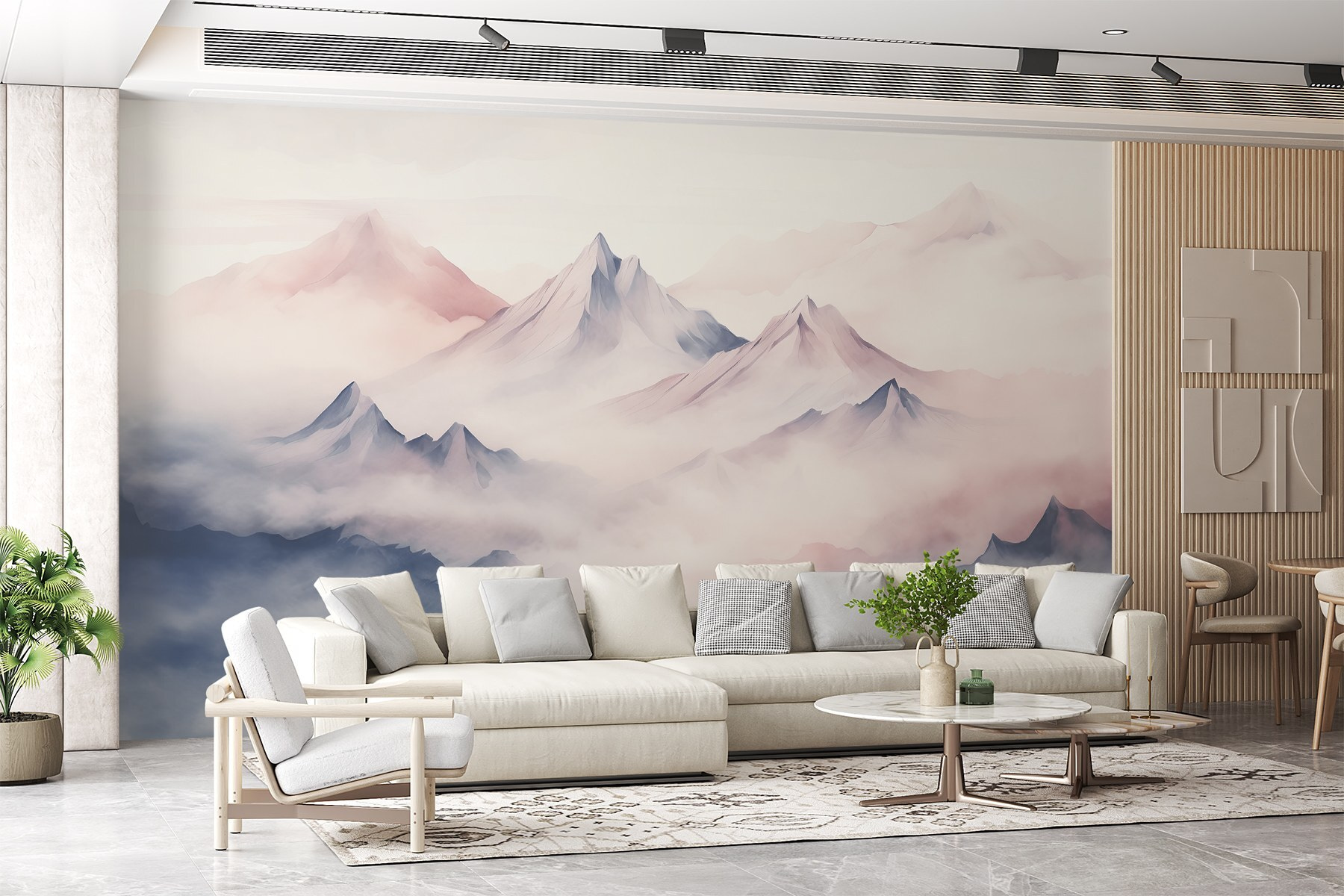 Μεταμορφώστε το χώρο σας σε μια ονειρική απόδραση με αυτή την εκπληκτική τοιχογραφία μιας οροσειράς που καλύπτεται από λεπτά σύννεφα. Φανταστείτε να πίνετε τον πρωινό σας καφέ εδώ, περιτριγυρισμένοι από απαλές παστέλ αποχρώσεις που ηρεμούν αμέσως την ψυχή. Το εφέ ακουαρέλας προσθέτει μια πινελιά ιδιοτροπίας, κάνοντας κάθε ματιά να μοιάζει με μια μίνι απόδραση – δεν απαιτούνται μπότες πεζοπορίας! Ιδανική για κάθε δωμάτιο, αυτή η τοιχογραφία προσκαλεί σε ονειροπολήσεις περιπετειών και γαλήνια πρωινά. Είναι σαν να φέρνετε ένα κομμάτι της φύσης στο σπίτι, χωρίς τα τσιμπήματα των κουνουπιών. Δώστε στους τοίχους σας μια ιστορία να διηγηθείτε!