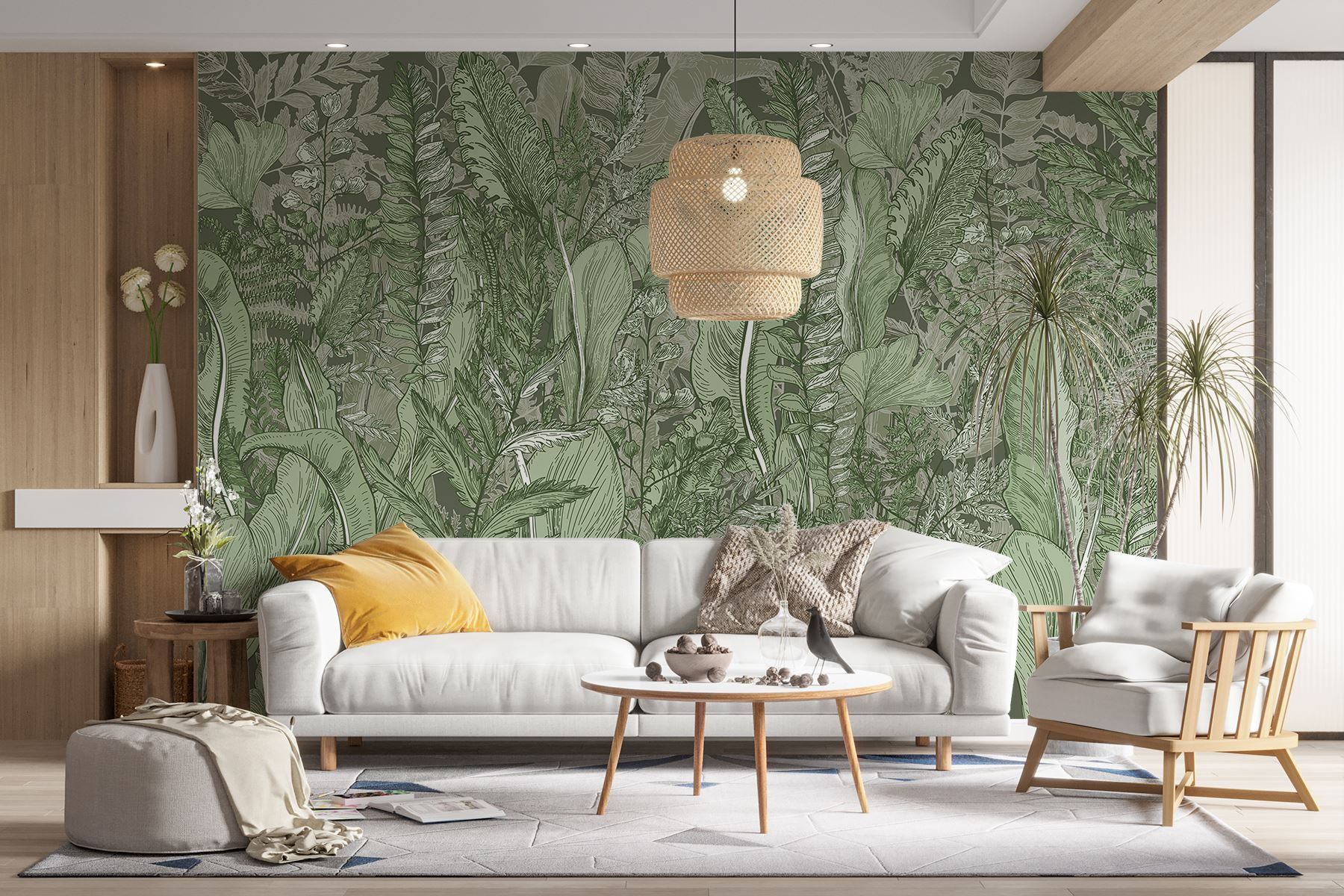 Μεταμορφώστε οποιονδήποτε χώρο σε μια γαλήνια όαση με την τοιχογραφία “Lush Greenery”. Είναι σαν να κάνετε μια βόλτα σε ένα ζωντανό δάσος χωρίς να βγείτε από το δωμάτιό σας! Γεμάτο με περίτεχνα φύλλα και ντελικάτες φτέρες, αυτό το έργο τέχνης προσκαλεί ένα άγγιγμα της φύσης στους εσωτερικούς χώρους. Φανταστείτε να βολευτείτε με ένα καλό βιβλίο, περιτριγυρισμένοι από αυτό το ηρεμιστικό πράσινο – ιδανικό για να ονειροπολήσετε ή να χαλαρώσετε μετά από μια κουραστική μέρα. Επιπλέον, είναι μια κομψή λύση για όσους δυσκολεύονται να διατηρήσουν ζωντανά τα φυτά εσωτερικού χώρου (χωρίς κριτική!). Αφήστε τους καταπραϋντικούς τόνους να δώσουν ζωή στους τοίχους σας και ανεβάστε το παιχνίδι της διακόσμησής σας αβίαστα.