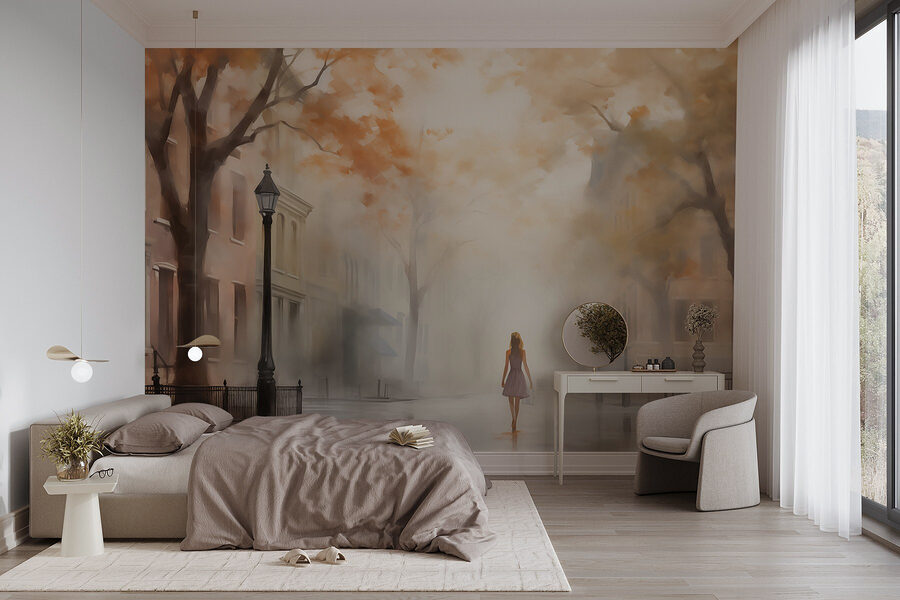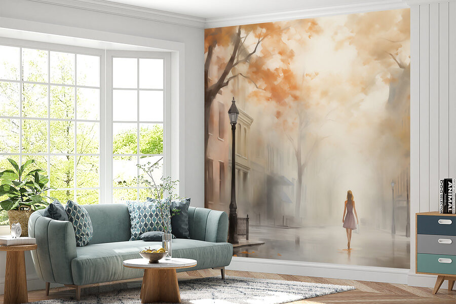 Φανταστείτε αυτό: μια γυναίκα να περπατάει σε έναν ομιχλώδη δρόμο, τυλιγμένη στις ζεστές αποχρώσεις του φθινοπώρου. Αυτή η τοιχογραφία δεν είναι απλώς τέχνη- είναι μια πόρτα σε μια ονειρική απόδραση. Φανταστείτε το να φωτίζει το σαλόνι ή το άνετο υπνοδωμάτιό σας, προσελκύοντας όποιον ρίξει μια ματιά. Η ομίχλη δημιουργεί μια αίσθηση μυστηρίου, κάνοντας κάθε ματιά να μοιάζει με περιπέτεια. Επιπλέον, αυτή η νοσταλγική ατμόσφαιρα; Ιδανική για τα βράδια που περνάτε αναπολώντας ή σχεδιάζοντας την επόμενη απόδρασή σας. Είναι σαν να προσκαλείτε ένα γαλήνιο κομμάτι της ζωής της πόλης στο σπίτι σας, ένα ονειρικό βήμα τη φορά – τέτοια ατμόσφαιρα!