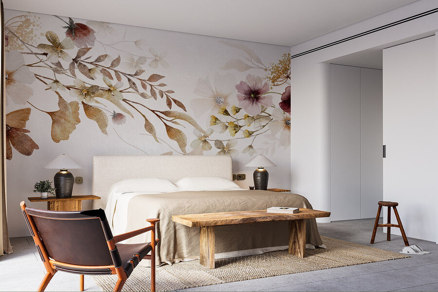 Μεταμορφώστε το χώρο σας με αυτή την εκπληκτική τοιχογραφία που χορεύει με ντελικάτα λουλούδια και φύλλα, όλα σε απαλές, ονειρικές ακουαρέλες. Φανταστείτε να ξυπνάτε κάθε μέρα με μια απαλή υπενθύμιση της ομορφιάς της φύσης να περιβάλλει το δωμάτιό σας. Είναι σαν να φέρνετε έναν κήπο μέσα στο σπίτι – χωρίς ενοχλητικά ζωύφια!