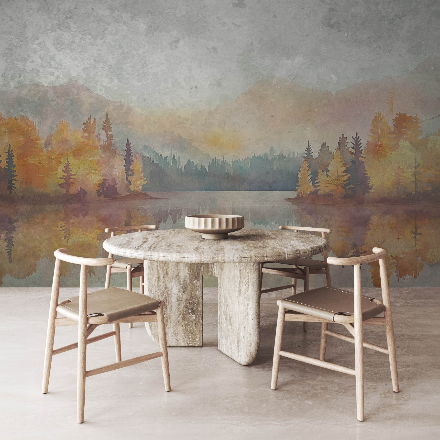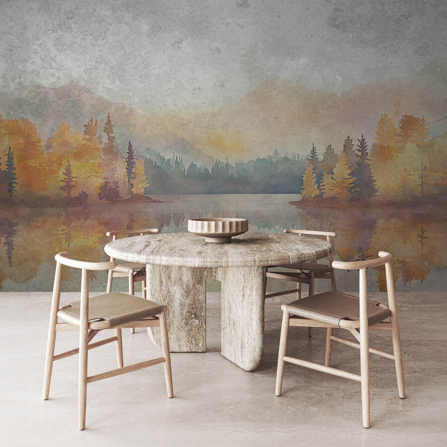 Μεταμορφώστε το χώρο σας σε μια ζεστή απόδραση με αυτή την εκπληκτική τοιχογραφία ακουαρέλας μιας γαλήνιας λίμνης που περιβάλλεται από καταπράσινα δέντρα και επιβλητικά βουνά. Φανταστείτε να παρασύρεστε, με τον καφέ στο χέρι, καθώς τα ζεστά χρώματα και οι απαλές αντανακλάσεις σας μεταφέρουν στο αγαπημένο σας υπαίθριο καταφύγιο. Είναι σαν να προσκαλείτε ένα μικρό κομμάτι της φύσης μέσα στους τοίχους. Ιδανική για ένα σαλόνι ή μια ήρεμη ατμόσφαιρα γραφείου, αυτή η τοιχογραφία προσθέτει βάθος και γοητεία με τις διακριτικές αποχρώσεις της. Δεν είναι απλώς διακόσμηση, είναι μια καθημερινή υπενθύμιση για να αναπνεύσετε, να χαλαρώσετε και ίσως ακόμη και να ονειροπολήσετε λίγο. Ποιος δεν θα ήθελε ένα άγγιγμα ηρεμίας στη ζωή του;