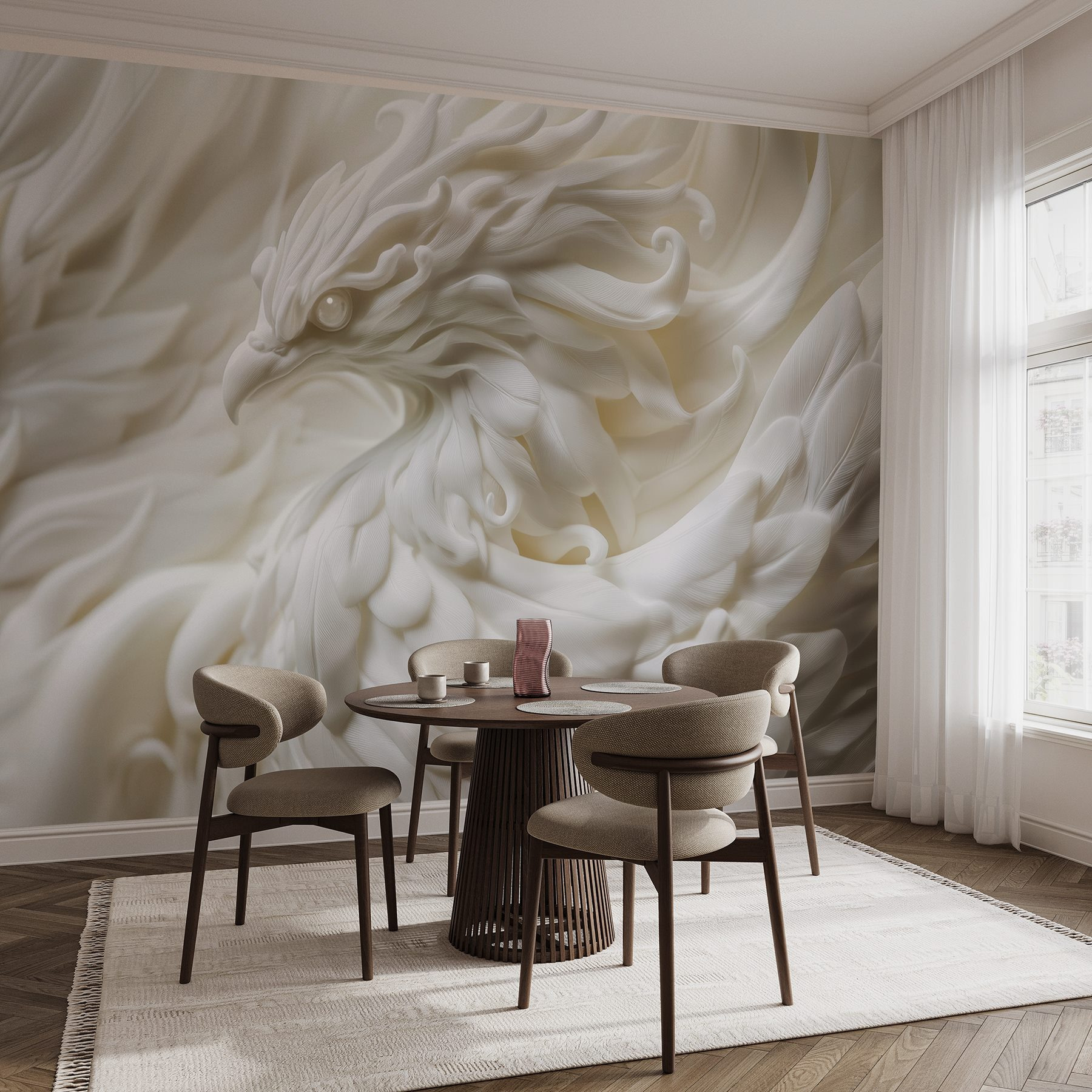 Μεταμορφώστε το χώρο σας με το μαγευτικό “Ταπετσαρίες White Bird Statue with Feathers”. Αυτό το εκπληκτικό κομμάτι φέρνει μια απαλή, γαλήνια ατμόσφαιρα που μοιάζει με ένα απαλό αεράκι σε μια ανοιξιάτικη μέρα. Φανταστείτε το – πίνετε τσάι και οι χαριτωμένες λεπτομέρειες του πουλιού αιχμαλωτίζουν τη φαντασία σας, προσκαλώντας σας να αφιερώσετε μια στιγμή για να απολαύσετε απλά. Η λεπτή υφή και τα λεπτά λευκά χρώματα δημιουργούν μια ατμόσφαιρα που είναι τόσο ηρεμιστική όσο και αναζωογονητική. Είναι σαν να έχετε ένα κομμάτι της φύσης ακριβώς στον τοίχο σας, που ψιθυρίζει γαλήνη και κομψότητα σε κάθε ματιά. Αυτή η τοιχογραφία δεν διακοσμεί απλώς, αλλά εμπνέει. Είτε βρίσκεται σε μια ζεστή γωνιά ανάγνωσης είτε σε ένα ζωντανό σαλόνι, είναι βέβαιο ότι θα προκαλέσει συζητήσεις και θα ζεστάνει καρδιές. Δημιουργήστε ένα μικρό καταφύγιο- γιατί ποιος δεν θα ήθελε μια φωλιά με στυλ στο σπίτι;