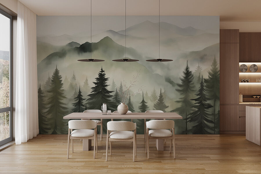 Μεταμορφώστε το χώρο σας με αυτή τη μαγευτική τοιχογραφία, “Ομίχλη με δέντρα”. Φανταστείτε να ξυπνάτε με τις απαλές αποχρώσεις των ομιχλώδων βουνών ακριβώς στον τοίχο σας. Είναι σαν να μπαίνετε σε μια γαλήνια απόδραση! Η απαλή αλληλεπίδραση της ομίχλης και των πανύψηλων δέντρων φέρνει μια ειρηνική ατμόσφαιρα, ιδανική για ένα άνετο σαλόνι ή ένα ηρεμιστικό υπνοδωμάτιο. Οι φίλοι σας μπορεί ακόμη και να σας ρωτήσουν αν έχετε πάει σε απόδραση στο βουνό! Η ξύλινη εμφάνιση προσθέτει μια πινελιά ρουστίκ γοητείας – ιδανική για τους λάτρεις της φύσης. Αφήστε αυτή την τοιχογραφία να τυλίξει το σπίτι σας με ηρεμία και έναν διακριτικό ψίθυρο της άγριας φύσης. Απλά μην ξεχάσετε να ετοιμάσετε τσάι- θα θέλετε να το πιείτε απολαμβάνοντας αυτή την όμορφη θέα!
