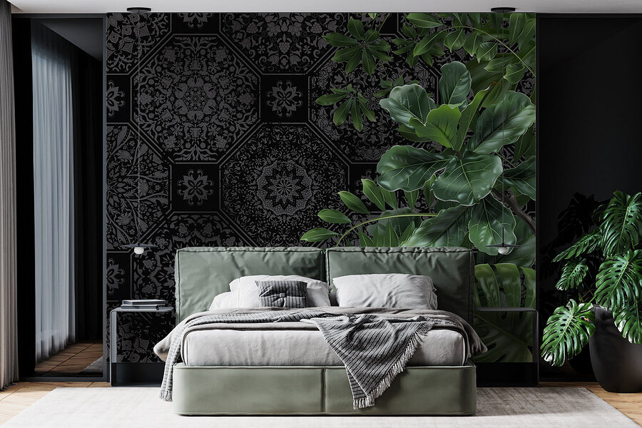 Μεταμορφώστε το χώρο σας με αυτή την εκπληκτική μαύρη και γκρι ταπετσαρία με τα πλούσια πράσινα φύλλα. Φανταστείτε να μπαίνετε σε ένα δωμάτιο που μοιάζει με τροπική απόδραση! Τα περίπλοκα γεωμετρικά μοτίβα παρέχουν ένα φανταστικό σκηνικό, ενώ αυτά τα ζωντανά φύλλα φέρνουν μια βουτιά ζωής και ενέργειας. Θα νιώσετε σαν να περιβάλλεστε από τη φύση – χωρίς τα κουνούπια, φυσικά! Ιδανική για μια άνετη γωνιά ανάγνωσης ή για έναν τοίχο με δήλωση, αυτή η τοιχογραφία συνδυάζει αβίαστα την κομψότητα με μια πινελιά άγριας φύσης. Είστε έτοιμοι για σοβαρές δονήσεις στυλ; Οι τοίχοι σας θα σας ευχαριστήσουν!