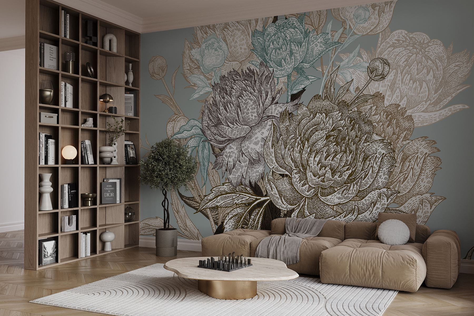 Μεταμορφώστε έναν βαρετό τοίχο σε μια ζεστή όαση κήπου με αυτή την εκπληκτική φλοράλ τοιχογραφία! Με απαλές, ντελικάτες αποχρώσεις, προσκαλεί μια γαλήνια ατμόσφαιρα που μπορεί να σας κάνει να ξεχάσετε ότι βρίσκεστε σε εσωτερικό χώρο. Φανταστείτε να βυθίζεστε στην αγαπημένη σας καρέκλα, με ένα φλιτζάνι τσάι στο χέρι, περιτριγυρισμένοι από κομψές παιώνιες και ευγενικά άνθη – ποιος ήξερε ότι τα λουλούδια μπορούν να φέρουν τέτοια γαλήνη; Αυτό το σχέδιο ψιθυρίζει διαχρονική ομορφιά, συνδυαζόμενο αβίαστα με οποιοδήποτε στυλ διακόσμησης. Ιδανικό για όποιον ονειρεύεται αυτή τη μαγεμένη γωνιά, είναι σαν να έχει έναν μυστικό κήπο στο σπίτι. Είναι ήδη άνοιξη;