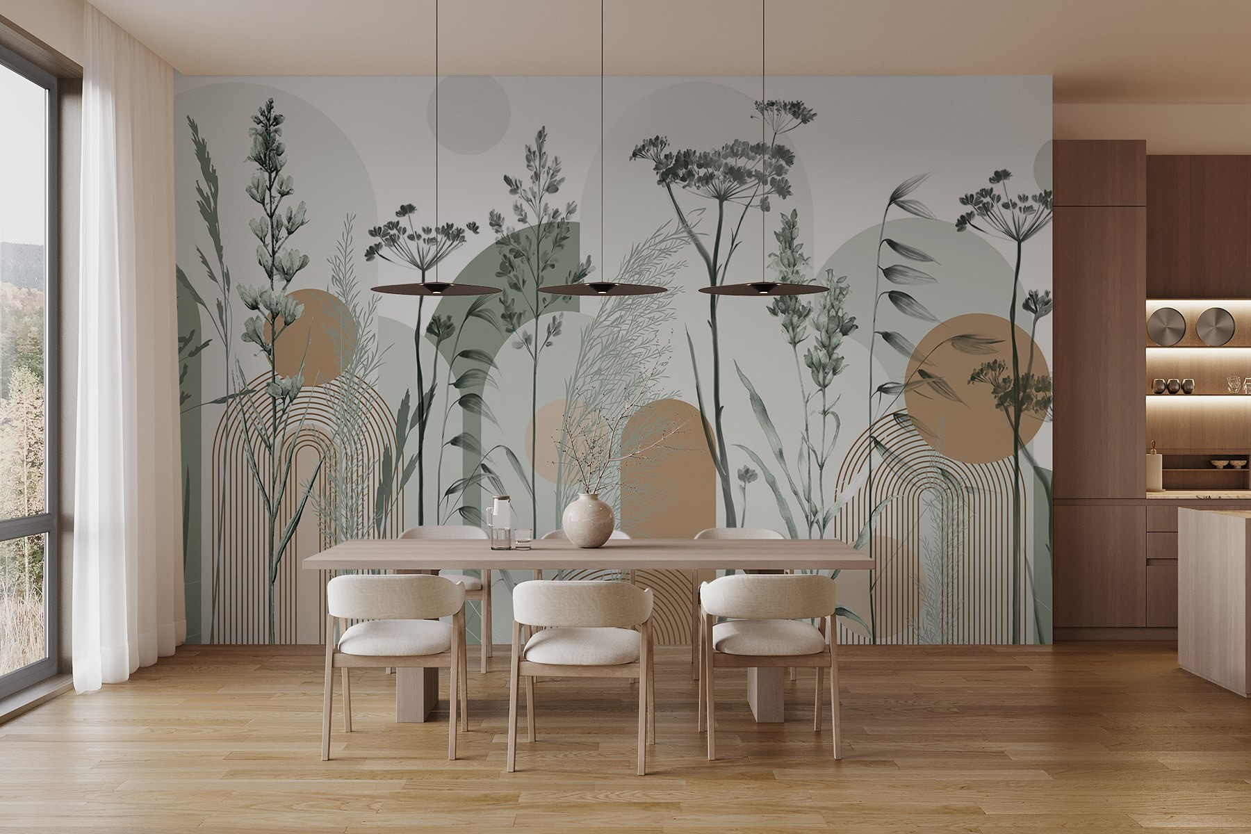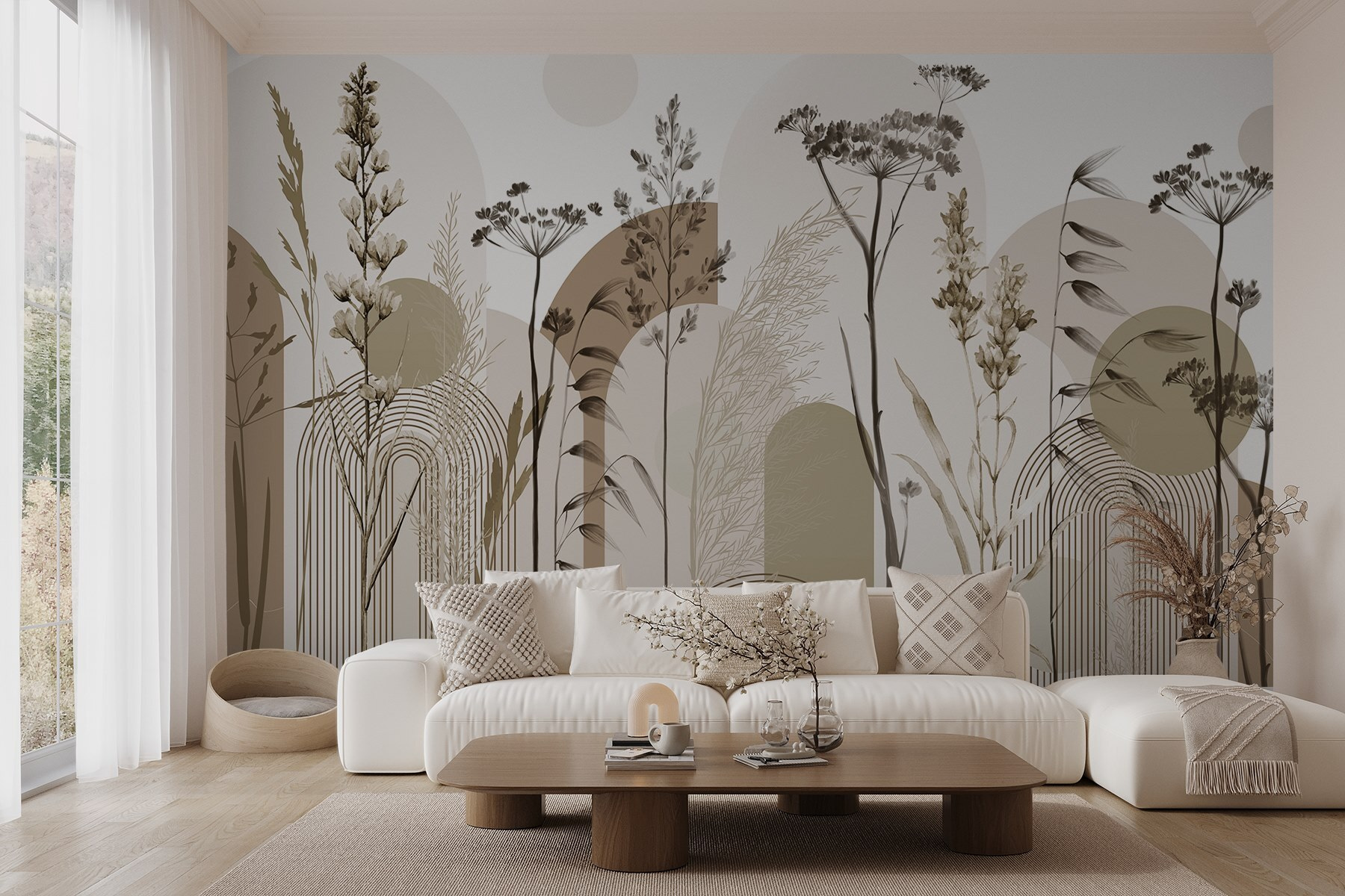 Μεταμορφώστε οποιονδήποτε τοίχο σε μια γαλήνια απόδραση με την τοιχογραφία “Η χάρη της φύσης σε απαλές αποχρώσεις”. Αυτό το κομμάτι φέρνει απαλές γήινες αποχρώσεις και απαλές δονήσεις ακουαρέλας που ψιθυρίζουν ειρήνη και ηρεμία. Φανταστείτε να μπαίνετε σε ένα δωμάτιο όπου τα ψηλά χόρτα λικνίζονται και τα απαλά περιγράμματα της φύσης σας υποδέχονται. Είναι σαν να έχετε ένα κομμάτι της μεγάλης υπαίθρου ακριβώς στο χώρο σας. Οι φίλοι σας μπορεί να σταματήσουν και να γελάσουν: “Είμαστε σε βοτανικό κήπο εδώ;”. Βάλτε μια άνετη καρέκλα ή μια βιβλιοθήκη, και είναι η τέλεια γωνιά για ένα φλιτζάνι τσάι και ένα καλό βιβλίο. Ποιος δεν θα το ήθελε αυτό;
