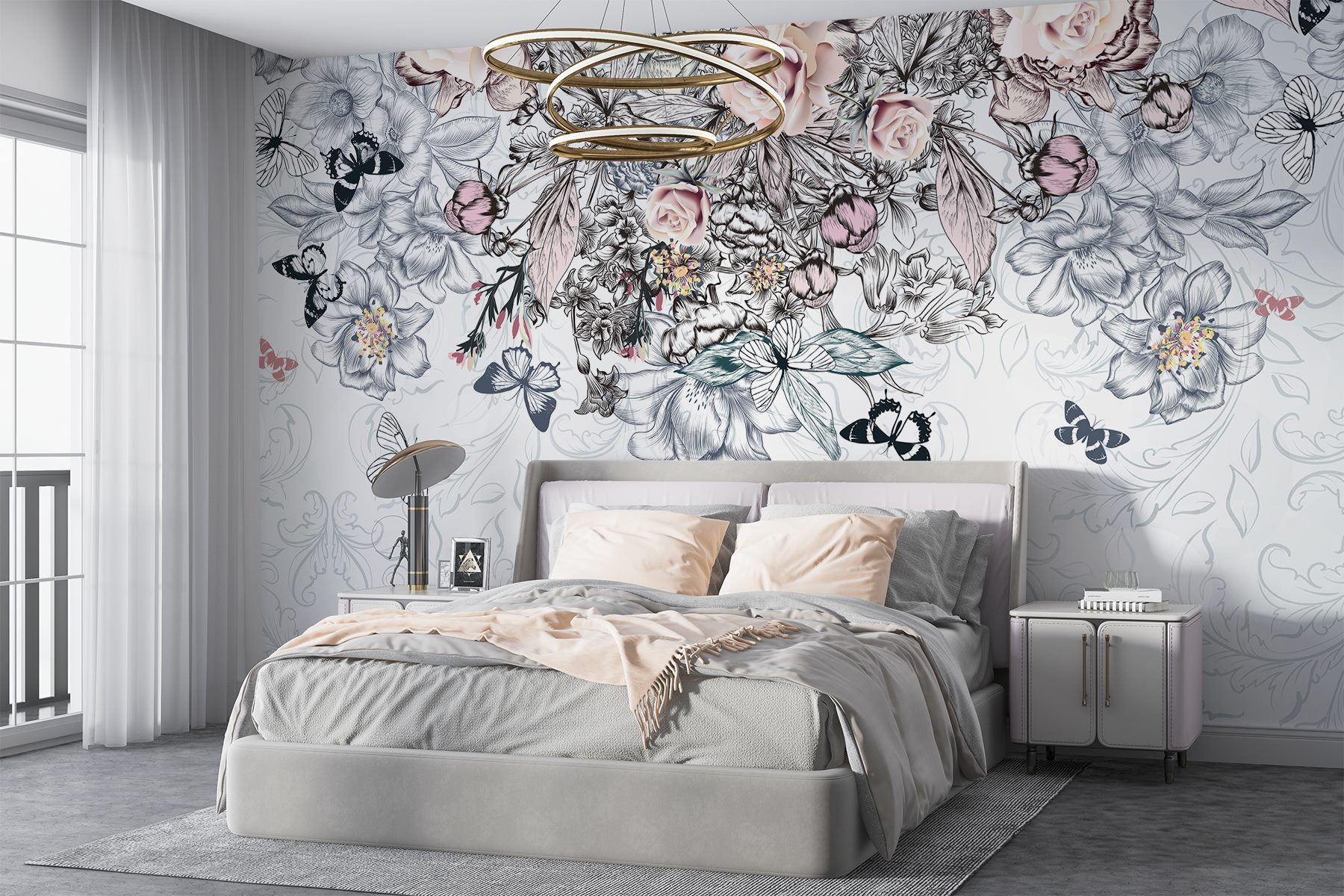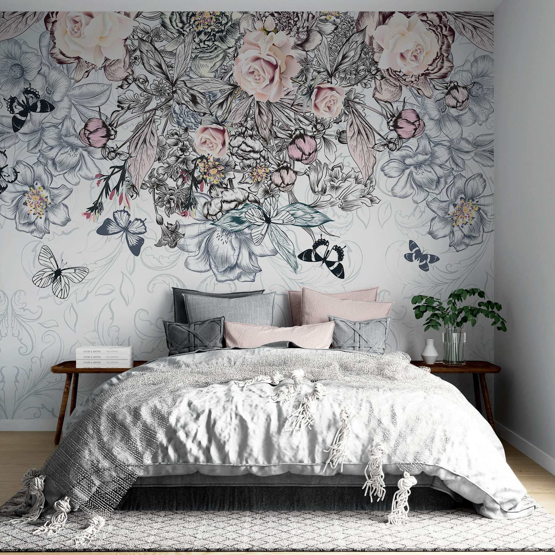 Μεταμορφώστε το χώρο σας σε ένα ζωντανό καταφύγιο με αυτή τη μαγευτική τοιχογραφία τοίχου, που παρουσιάζει ένα εκπληκτικό μείγμα λουλουδιών και πεταλούδων. Είναι σαν ένας ιδιόρρυθμος κήπος όπου τα άνθη και τα ντελικάτα φτερά χορεύουν μαζί, δημιουργώντας μια φιλόξενη ατμόσφαιρα. Φανταστείτε το: μπαίνοντας σε ένα δωμάτιο και νιώθοντας μια στιγμιαία ανάταση, σαν να έφτασε νωρίς η άνοιξη μόνο για εσάς. Τα απαλά χρώματα και οι γοητευτικές λεπτομέρειες προκαλούν χαρά και εμπνέουν ονειροπολήσεις. Ιδανική για μια ζεστή γωνιά ανάγνωσης ή μια χαρούμενη κουζίνα, αυτή η τοιχογραφία φέρνει τη φύση στο εσωτερικό, ψιθυρίζοντας γλυκά μηνύματα χαλάρωσης και ομορφιάς. Ποιος δεν θα ήθελε λίγη ανάλαφρη μαγεία στο σπίτι του;