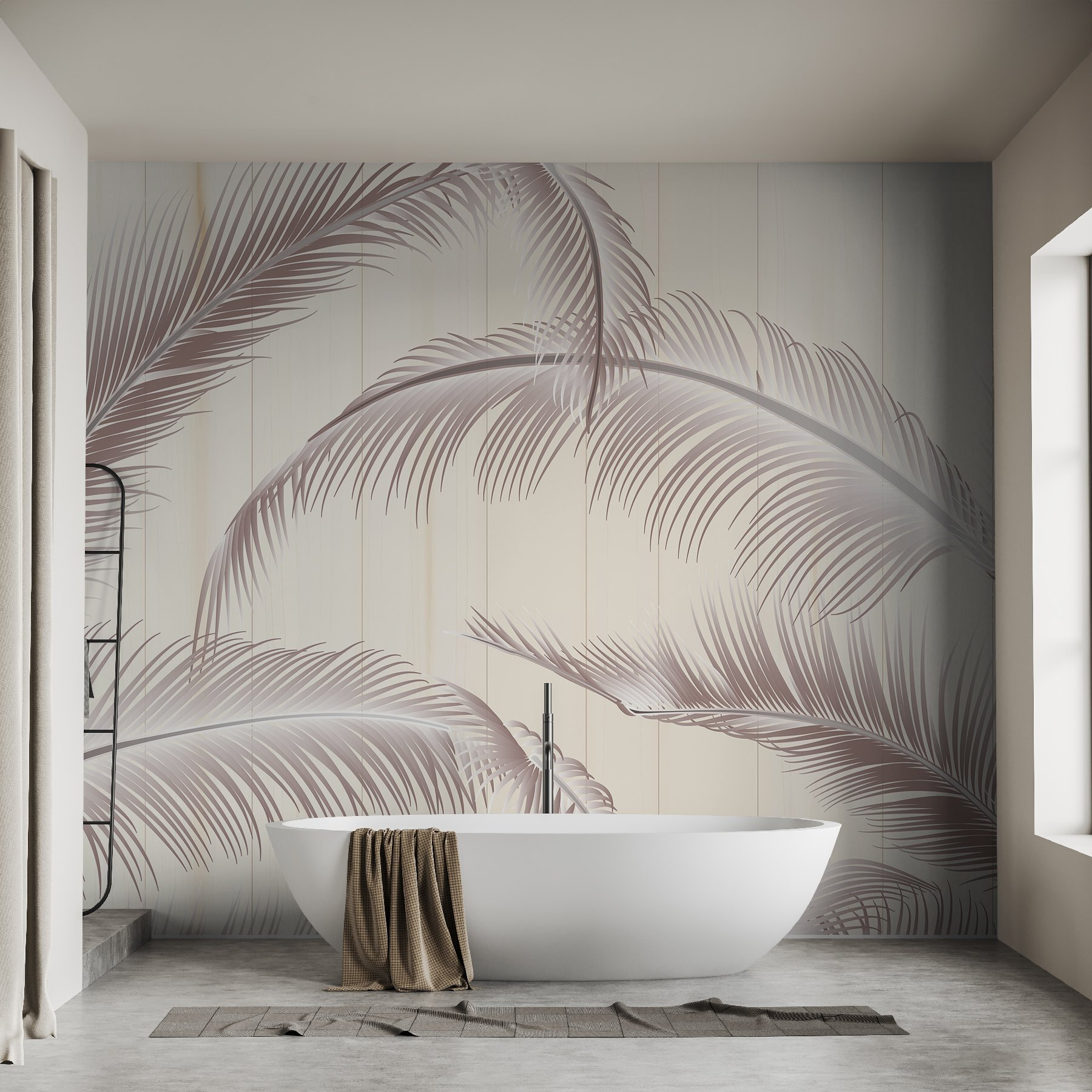 Μεταμορφώστε το χώρο σας με αυτή την ονειρική τοιχογραφία που ονομάζεται “Natural Elegance in Soft Tones”. Φανταστείτε να αράζετε σε μια γαλήνια όαση, με φοινικόφυλλα να λικνίζονται απαλά, αφήνοντας την ειρηνική ατμόσφαιρα να σας κατακλύσει. Οι λεπτές αποχρώσεις προσκαλούν μια ζεστή αίσθηση που συμπληρώνει κάθε διακόσμηση, είτε πρόκειται για μια χαλαρή γωνιά ανάγνωσης είτε για ένα κομψό σαλόνι. Είναι σαν να φέρνετε ένα κομμάτι του τροπικού παραδείσου στο σπίτι – χωρίς το αντηλιακό! Φανταστείτε να πίνετε τον καφέ σας καθώς το φως του ήλιου φιλτράρεται και ρίχνει παιχνιδιάρικες σκιές. Ιδανική για όσους επιθυμούν ένα άγγιγμα φύσης, αυτή η τοιχογραφία είναι έναυσμα για συζήτηση και μια καθημερινή υπενθύμιση της ηλιόλουστης απόδρασης στην παραλία.