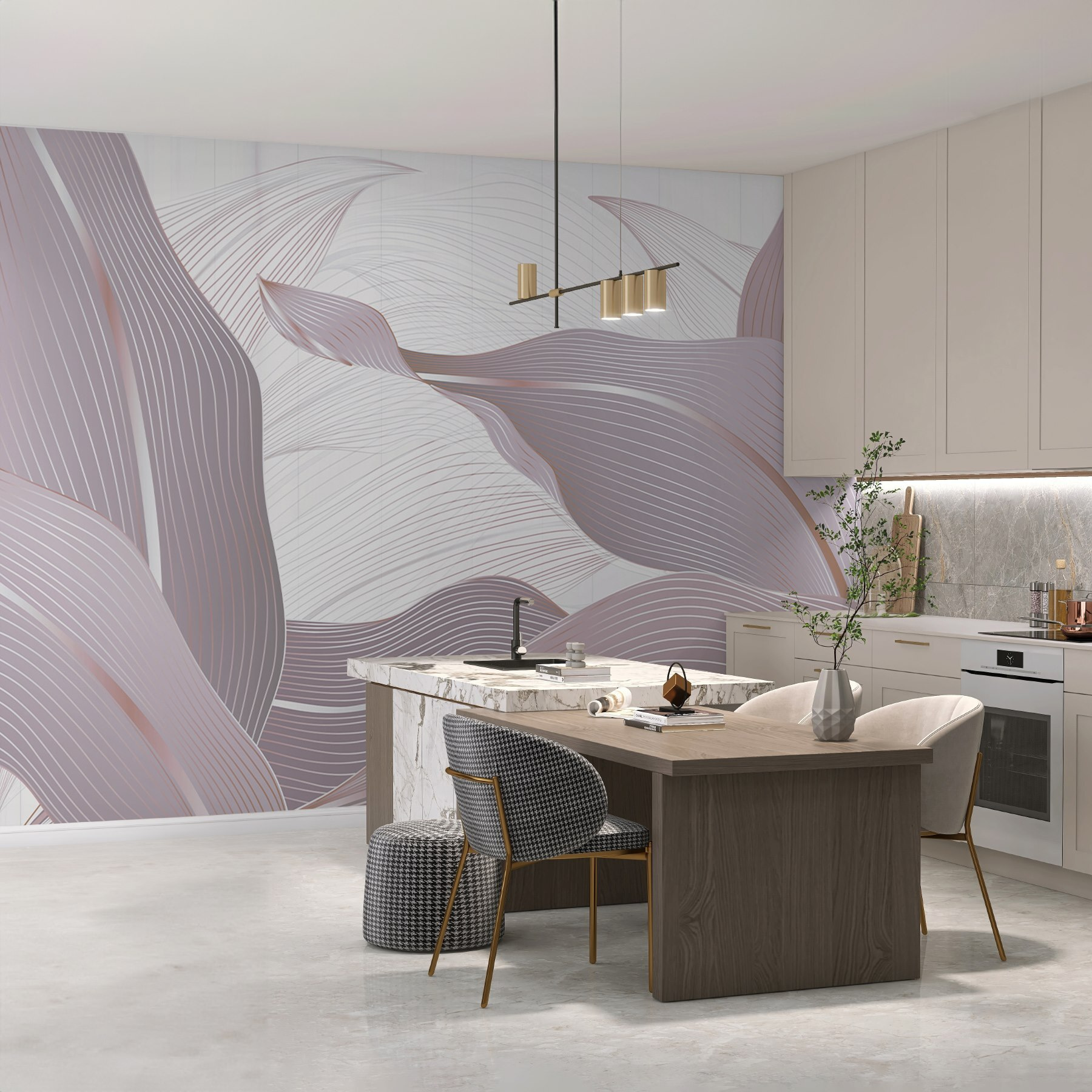 Μεταμορφώστε το χώρο σας με “Ρευστές γραμμές σε απαλές αποχρώσεις”. Αυτή η τοιχογραφία ψιθυρίζει δημιουργικότητα και ηρεμία όπως ένα απαλό αεράκι που θροΐζει τα φύλλα. Φανταστείτε το να φωτίζει μια ζεστή γωνιά ανάγνωσης ή να προσθέτει μια πινελιά ομορφιάς σε μια μινιμαλιστική κουζίνα. Οι στριφογυριστές γραμμές χορεύουν με διακριτικά χρώματα, προσφέροντας μια αίσθηση γαλήνης που προσκαλεί σε ονειροπολήσεις και ελαφρές συζητήσεις πάνω από τον καφέ.