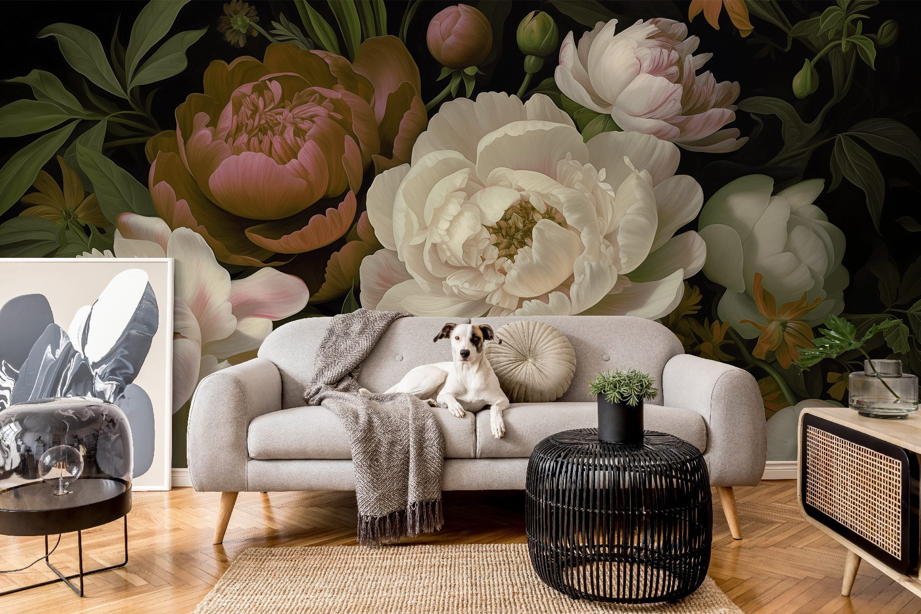 Μεταμορφώστε το χώρο σας με αυτή την εκπληκτική τοιχογραφία τοίχου με μια ζωντανή ομάδα λουλουδιών σε πλούσιο μαύρο φόντο. Φανταστείτε να μπαίνετε σε ένα δωμάτιο όπου οι παιώνιες, τα τριαντάφυλλα και τα απολαυστικά μπουμπούκια ανθίζουν μπροστά στα μάτια σας. Αυτή η τοιχογραφία δεν προσθέτει απλώς χρώμα, αλλά αφηγείται μια ιστορία, κάτι σαν εκείνες τις μεγάλες, άνετες οικογενειακές συγκεντρώσεις όπου το γέλιο γεμίζει τον αέρα. Με κάθε σας ματιά, μπορεί να νιώσετε τα απαλά πέταλα ή να πάρετε μια ιδέα από το γλυκό άρωμα της άνοιξης. Είναι η τέλεια πινελιά για μια ζεστή γωνιά ανάγνωσης ή μια φιλόξενη είσοδο. Ποιος δεν θα ήθελε έναν κήπο που δεν ξεθωριάζει ποτέ στο σπίτι του;