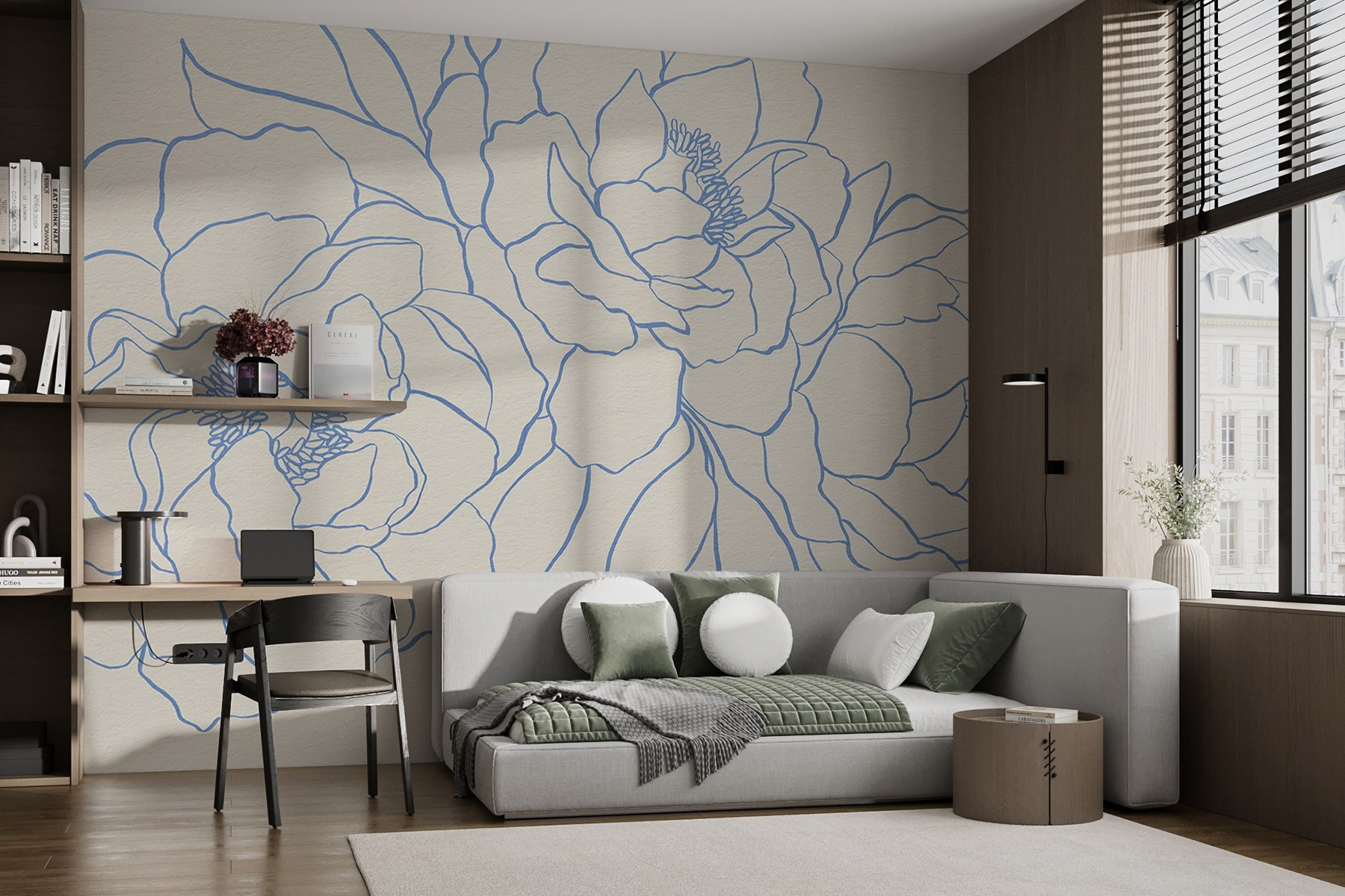 Προσθέστε μια πινελιά γαλήνιας ομορφιάς στον χώρο σας με αυτή τη γοητευτική ταπετσαρία τοίχου με λεπτεπίλεπτα λουλούδια σε απαλό μπλε χρώμα πάνω σε ένα ζεστό, κρεμ φόντο. Είναι σαν να έχετε έναν ήσυχο κήπο που ανθίζει ακριβώς στον τοίχο σας! Ιδανική για μια ζεστή γωνιά ανάγνωσης ή ένα ζωντανό σαλόνι, αυτή η ταπετσαρία προσθέτει μια πινελιά προσωπικότητας χωρίς να είναι υπερβολική. Φανταστείτε να πίνετε μια κούπα τσάι, περιτριγυρισμένοι από αυτά τα υπέροχα λουλούδια, νιώθοντας όλες τις ανησυχίες σας να εξαφανίζονται. Επιπλέον, η ατμόσφαιρα της ακουαρέλας προσδίδει μια φρέσκια, καλλιτεχνική πινελιά. Είναι σαν μια απαλή αγκαλιά από τη Μητέρα Φύση – μια απλή αλλά εντυπωσιακή αναβάθμιση για κάθε δωμάτιο!