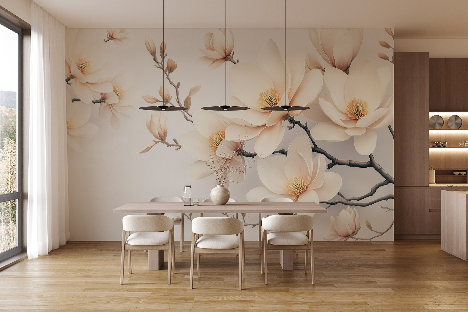 Transform your space with the “Delicate Blossoms in Soft Hues” mural, where sophistication meets serenity. Picture stepping into a tranquil garden each day—those dreamy white flowers gracefully unfurl against a soft background, whispering calm vibes. Imagine curling up with a good book or sipping coffee, all while surrounded by nature’s beauty, minus the pollen! It’s not just decor; it’s like inviting spring right into your living room. Whether it’s a cozy nook or a lively dining area, these blossoms are here to elevate. Just a touch of elegance, and voilà! Your walls instantly feel like a breath of fresh air. Who knew a mural could bloom with such charm?