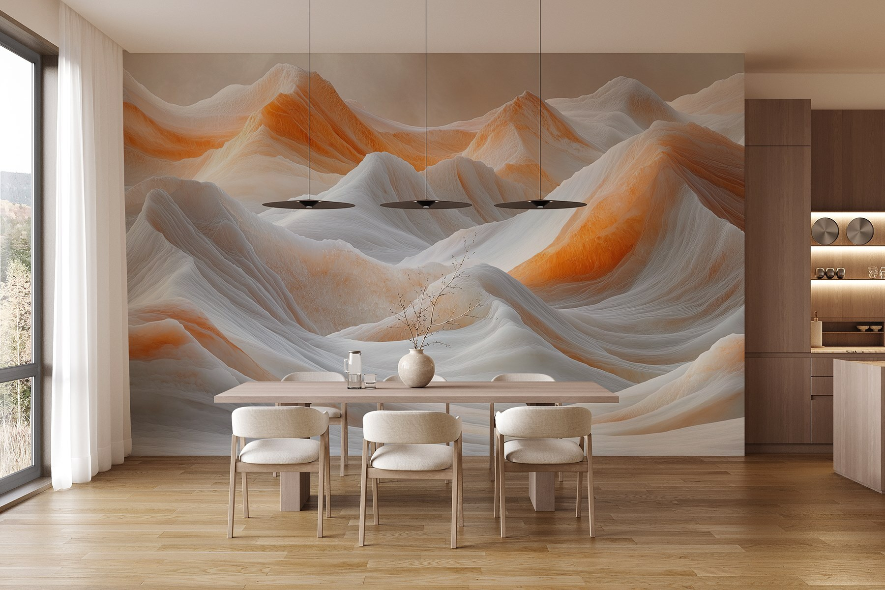 Μεταμορφώστε οποιονδήποτε χώρο με αυτή την εκπληκτική ταπετσαρία τοίχου που απεικονίζει χιονισμένα βουνά κάτω από έναν ονειρικό, συννεφιασμένο ουρανό. Φανταστείτε να ξυπνάτε κάθε μέρα με αυτή την γαλήνια θέα – είναι σαν να μπαίνετε σε έναν κόσμο όπου ο χειμώνας αγκαλιάζει τη γη και τα σύννεφα παίζουν κρυφτό. Τα απαλά λευκά και οι ζεστοί τόνοι δημιουργούν μια ζεστή ατμόσφαιρα, καθιστώντας την ιδανική για σαλόνια, υπνοδωμάτια ή ακόμα και για μια ήσυχη γωνιά γραφείου. Φανταστείτε να πίνετε ζεστή σοκολάτα ενώ αγναντεύετε αυτές τις μαγευτικές κορυφές. Δεν είναι απλώς διακόσμηση, είναι μια πρόσκληση να χαλαρώσετε, να αναπνεύσετε βαθιά και να αφήσετε τη φαντασία σας να περιπλανηθεί σε αυτά τα παγωμένα τοπία. Είναι εμπνευστικό, χαλαρωτικό και λίγο μαγικό, δεν νομίζετε; Αναβαθμίστε τους τοίχους σας με μια πινελιά από τη φυσική ομορφιά.