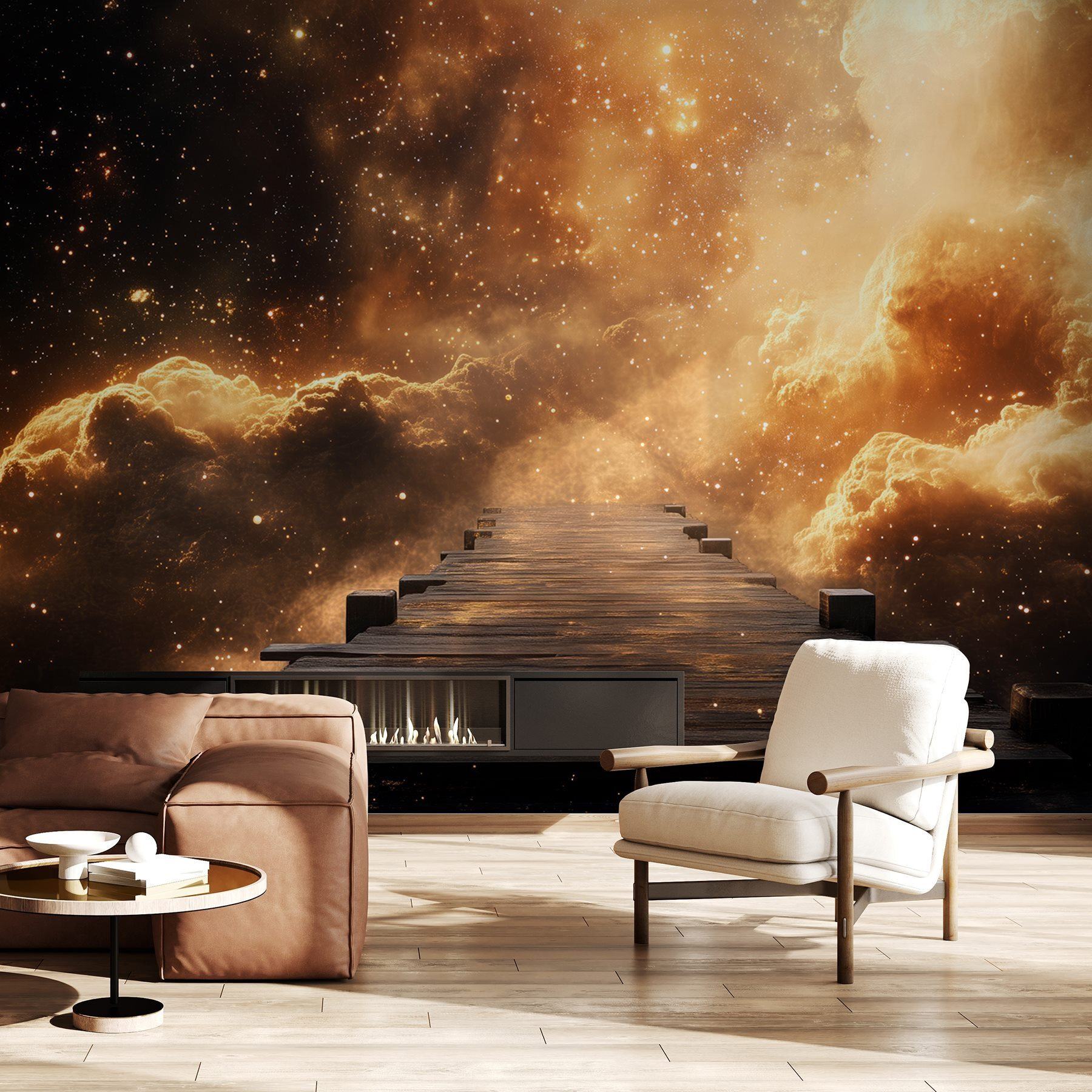 Transform your space with the “Wall Murals Wooden Bridge Leading to Clouds.” Imagine stepping onto a weathered wooden bridge that seems to stretch into a dreamy galaxy. It invites a sense of adventure, like a “where will I end up?” kind of vibe. The vibrant hues blend warm and cool tones, creating a magical backdrop that awakens the imagination. Picture those quiet mornings sipping coffee while gazing at a sky sprinkled with stars and clouds—pure bliss. It’s perfect for sparking creativity or simply daydreaming. This mural’s got that easy elegance, bringing a touch of the fantastical right into your home. Who wouldn’t want to escape to the clouds now and then?