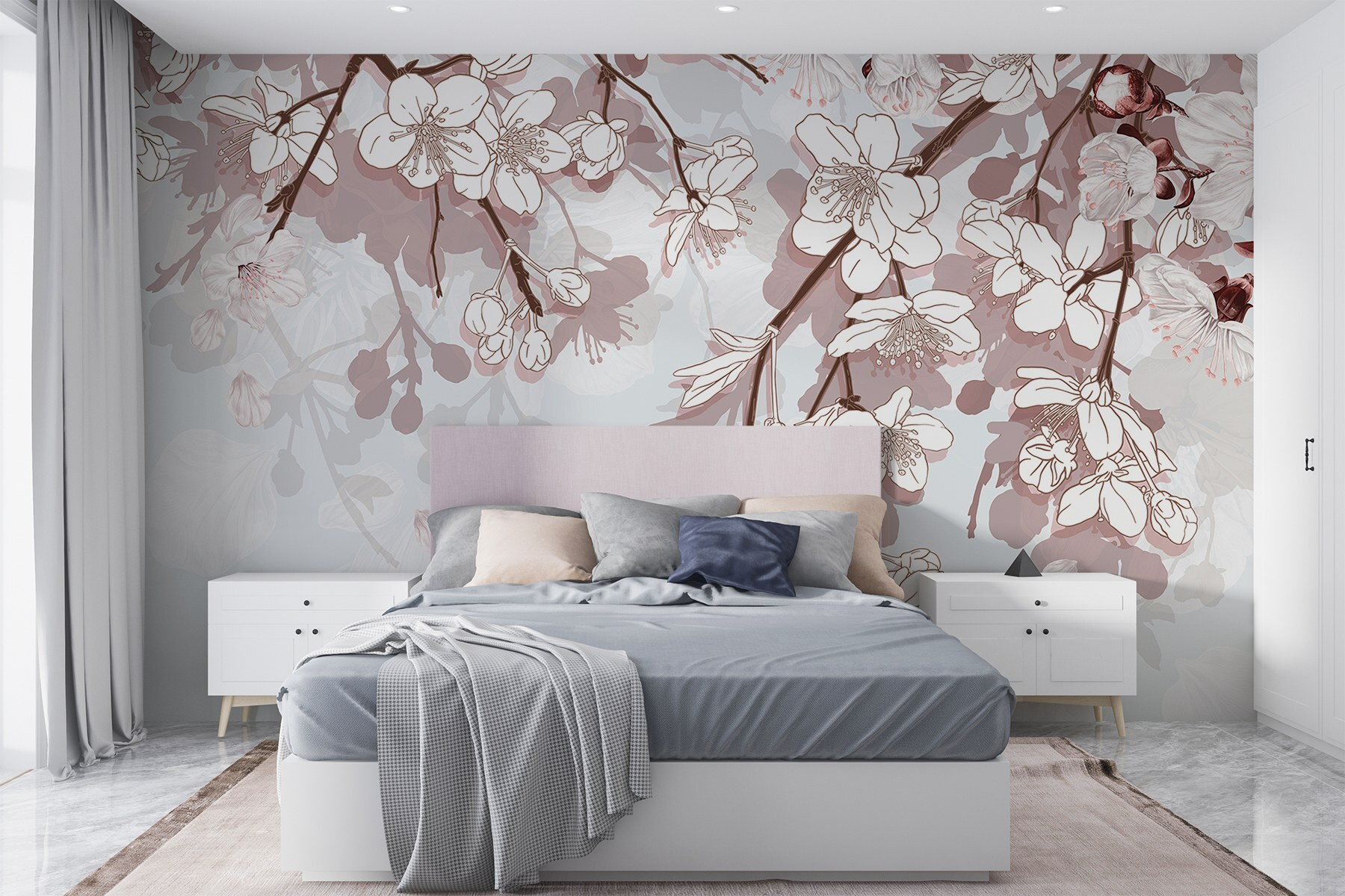 Transform any wall into a serene garden with “Delicate Blossoms in Soft Hues.” This mural is like a gentle breeze on a spring day—soft pastels mingle beautifully, inviting a sense of calm and warmth. Imagine stepping into a room and feeling instantly at peace, with these blossoms whispering sweet nothings of nature’s beauty. The watercolor style creates depth, like gazing through a misty window onto a blooming paradise. Perfect for a cozy nook or a lively living space, this mural turns your wall into a dreamy escape that’s bound to spark some daydreaming and a little inspiration. Go ahead, let these delicate blossoms brighten up your world!