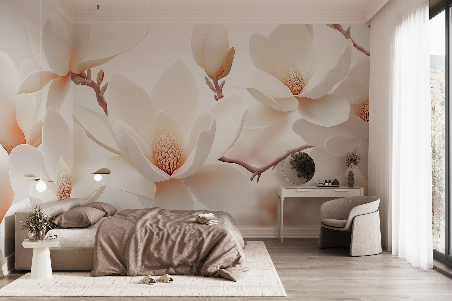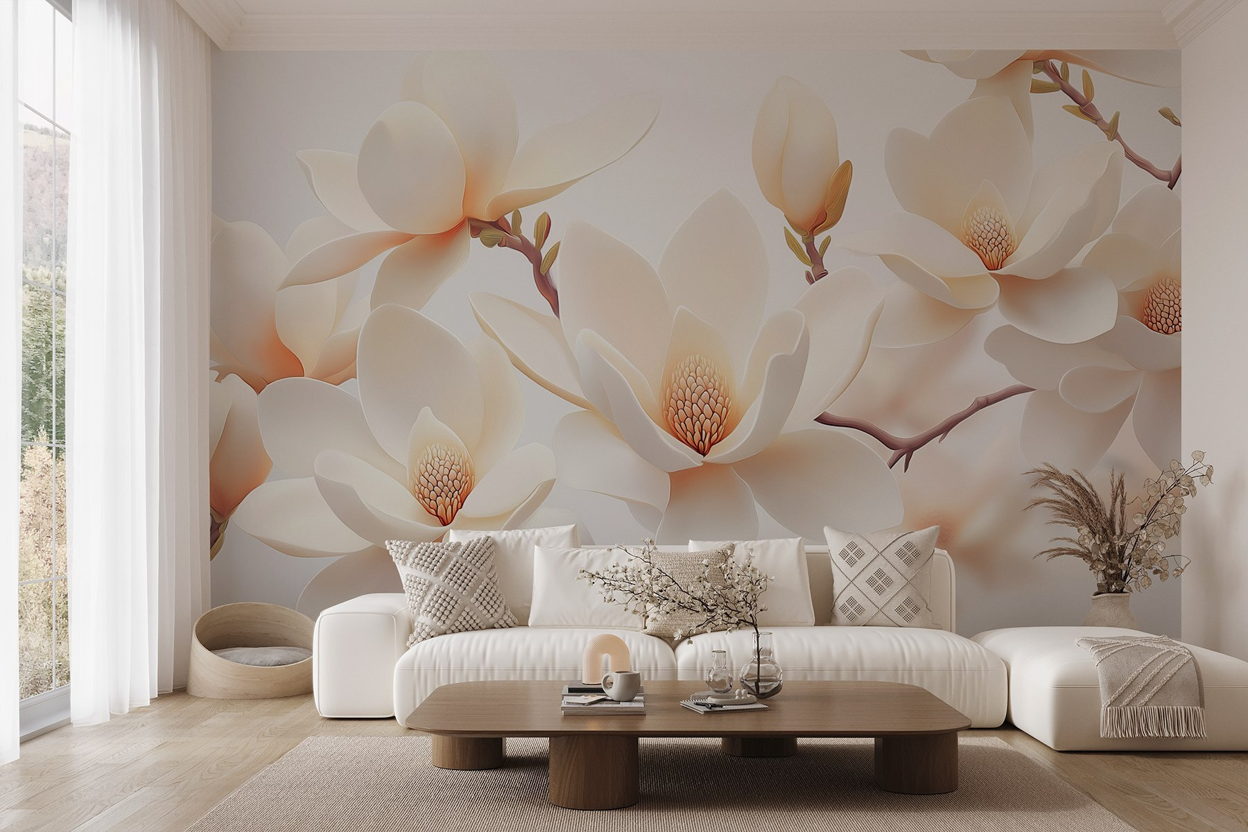 Μεταμορφώστε οποιοδήποτε δωμάτιο σε μια γαλήνια όαση με αυτή την εκπληκτική ταπετσαρία τοίχου που απεικονίζει μια ομάδα από λεπτεπίλεπτα λευκά λουλούδια. Φανταστείτε να ξυπνάτε με την απαλή κομψότητα των ανθισμένων πετάλων, τα απαλά χρώματα των οποίων φωτίζουν τον χώρο σας και σας ανεβάζουν τη διάθεση. Αυτό το σχέδιο ακουαρέλας δεν μένει απλώς εκεί, αλλά προσκαλεί τη ζωή στο δωμάτιο, σαν έναν κήπο σε πλήρη άνθιση. Φανταστείτε μια ζεστή γωνιά ανάγνωσης όπου το φως του ήλιου διαχέεται. Οι φίλοι σας θα σχολιάσουν: «Πού το βρήκες αυτό;» Είτε πρόκειται για σαλόνι, υπνοδωμάτιο ή γραφείο στο σπίτι, αυτή η ταπετσαρία μιλάει από μόνη της! Είναι σαν μια αγκαλιά της φύσης για τους τοίχους σας — ζεστή, φιλόξενη και λίγο ονειρική. Γιατί λοιπόν να μην προσθέσετε μια πινελιά λουλουδένιας φαντασίας; Δεν θα το μετανιώσετε!