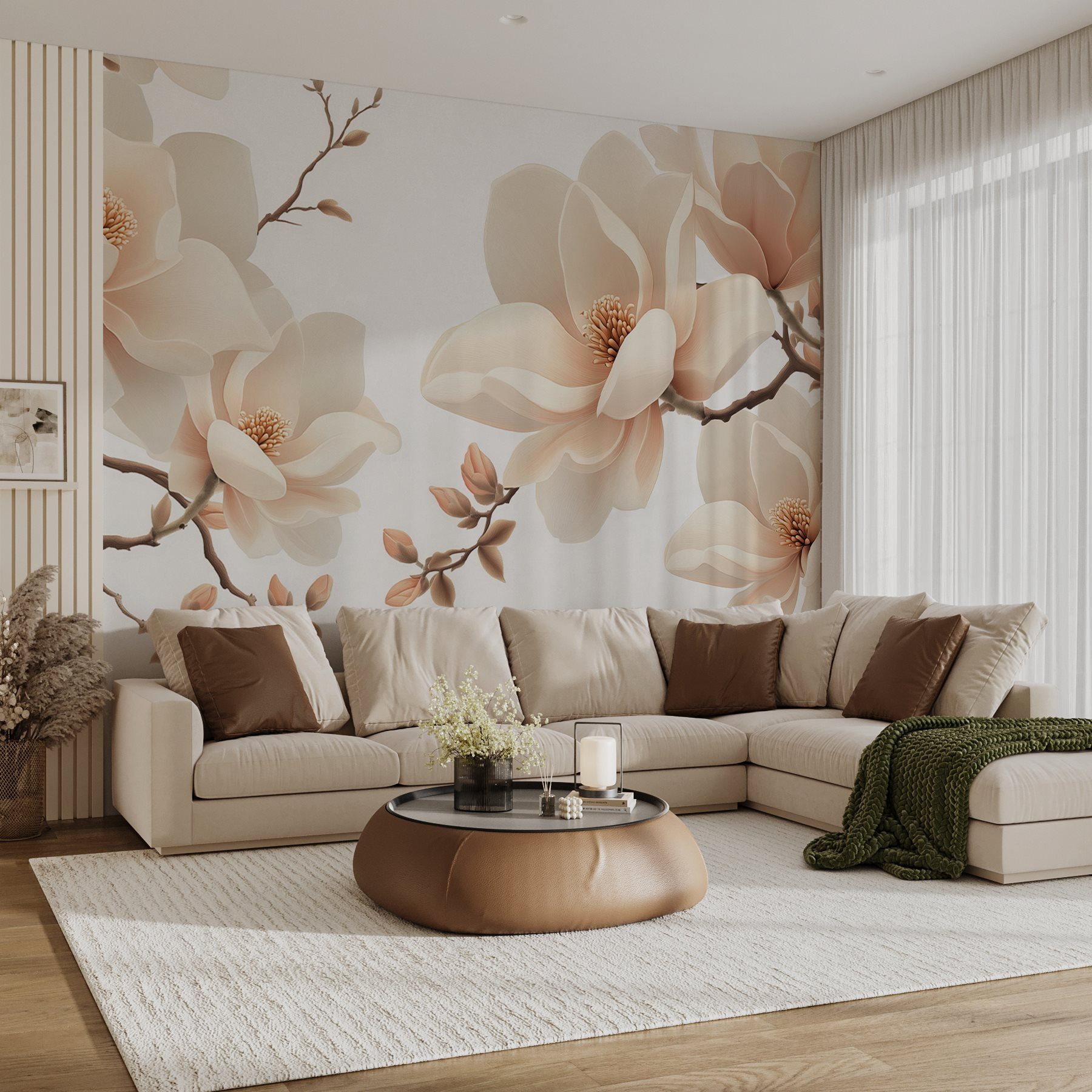 Perfect for creating a cozy nook or a stylish backdrop for those impromptu dance parties, this mural does it all. One moment you’re admiring the elegance of the petals, the next you’re daydreaming about spring picnics. Whether it’s in the living room, bedroom, or even a chic cafe, the beauty of these blooms can spark smiles and conversations—just like a good cup of coffee! So go ahead, let these charming blossoms breathe life into your walls and inspire a little joy each day.