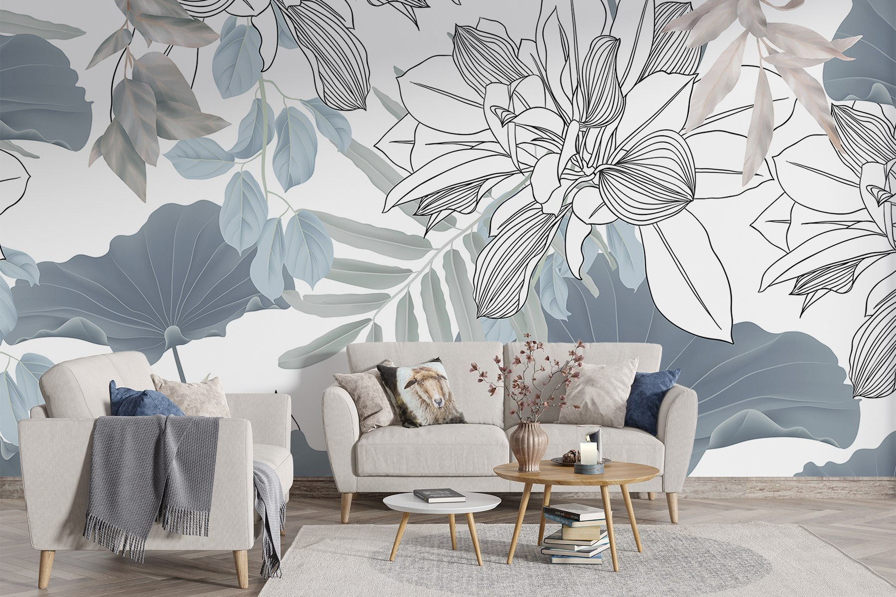 Μεταμορφώστε το χώρο σας με αυτή την εκπληκτική τοιχογραφία τοίχου με ένα φλοράλ μοτίβο που κοσμείται από φύλλα και λεπτά άνθη. Φανταστείτε να μπαίνετε σε ένα δωμάτιο όπου η φύση μοιάζει να σας αγκαλιάζει με φρέσκες δονήσεις και απαλά χρώματα. Αυτά τα απαλά μπλε και τα διακριτικά πράσινα; Ιδανικά για τη δημιουργία ενός ήρεμου καταφυγίου, είτε πρόκειται για μια ζεστή γωνιά ανάγνωσης είτε για μια ζωντανή τραπεζαρία. Φανταστείτε τη φιλοξενία φίλων, τις ζωηρές συζητήσεις να ρέουν, κάθε γωνιά του δωματίου να είναι αβίαστα φιλόξενη. Αυτή η τοιχογραφία δεν είναι απλώς διακόσμηση – είναι σαν μια ανάσα φρέσκου αέρα, που φέρνει ζωή και ζεστασιά. Ποιος δεν θα χαμογελούσε με λουλούδια σαν αυτά; Ιδανικό για όποιον θέλει να προσθέσει λίγη ομορφιά και γοητεία!