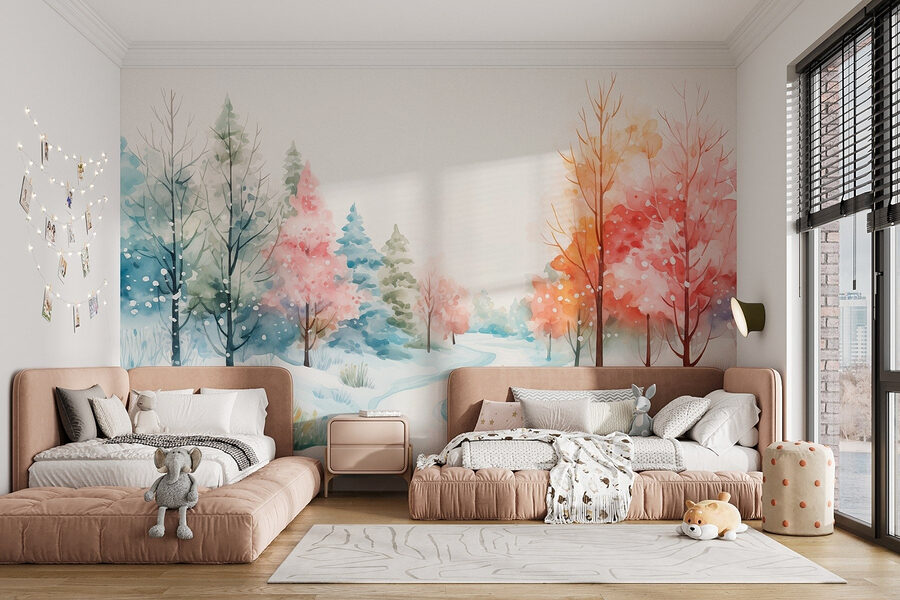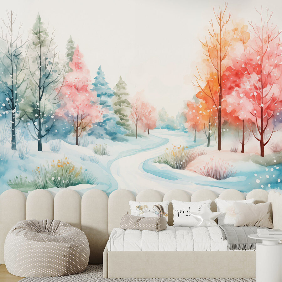 Μεταμορφώστε οποιονδήποτε χώρο με αυτή την ονειρική τοιχογραφία με μια ακουαρέλα που απεικονίζει έναν χιονισμένο δρόμο αγκαλιασμένο από δέντρα. Φανταστείτε το απαλό τρίξιμο του χιονιού κάτω από τα πόδια και το απαλό θρόισμα των κλαδιών που λικνίζονται στον άνεμο. Φέρνει ένα άγγιγμα γαλήνης και ιδιοτροπίας, ιδανικό για να ζεστάνετε ένα σαλόνι ή να φωτίσετε ένα γραφείο. Οι παιχνιδιάρικες χρωματικές πινελιές των δέντρων προσκαλούν ζεστασιά ακόμη και στα πιο παγωμένα πρωινά. Είναι σαν να μπαίνετε σε μια χειμερινή χώρα θαυμάτων, χωρίς τα κρύα δάχτυλα των ποδιών και το φτυάρισμα του χιονιού. Γιατί, λοιπόν, να μην αφήσετε τους τοίχους σας να διηγηθούν μια ιστορία ηρεμίας και ομορφιάς;